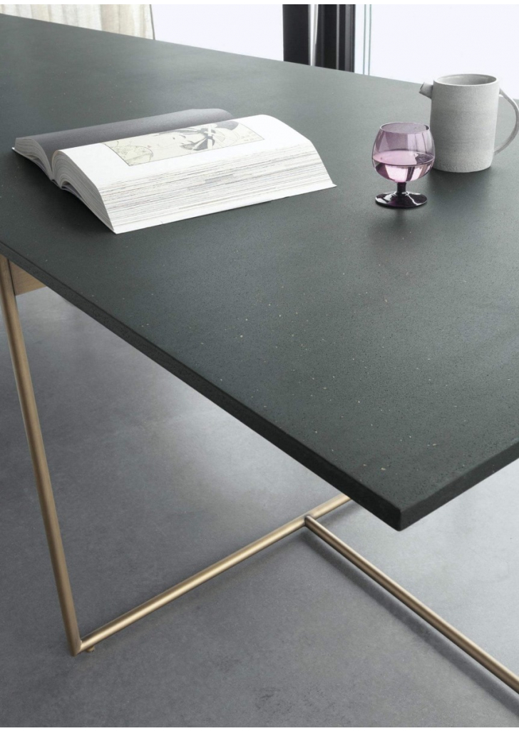 Table rectangulaire avec plateau mince et base en métal