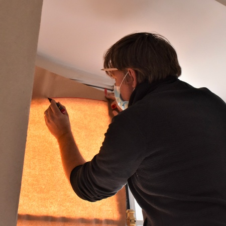 Ils répondent et créent plafonds et murs textiles fixes ou mobiles, acoustiques, occultants ou diffuseurs de lumière. LENGLART gaine aussi plinthes, moulures, panneaux, mobiliers et têtes de lit pour assurer confort et chaleur feutrée à votre décor.
