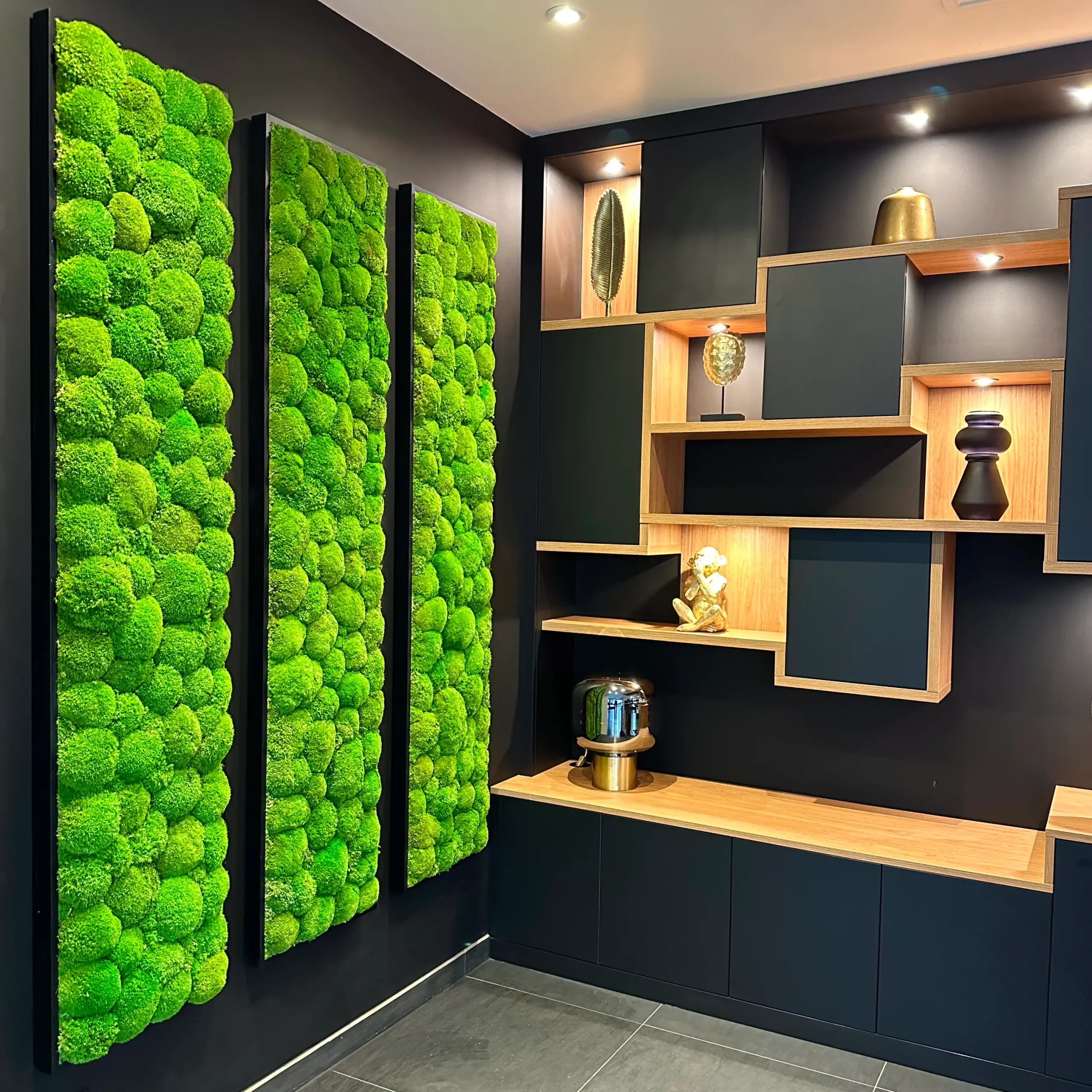Optez pour une décoration sur mesure qui s’ajuste à toutes les surfaces. Que vous privilégiez de petites œuvres avec nos tableaux végétaux stabilisés ou d’imposantes créations avec nos murs végétaux stabilisés, notre expertise dans la composition soignée des mousses et feuillages assure une esthétique personnalisée et raffinée.