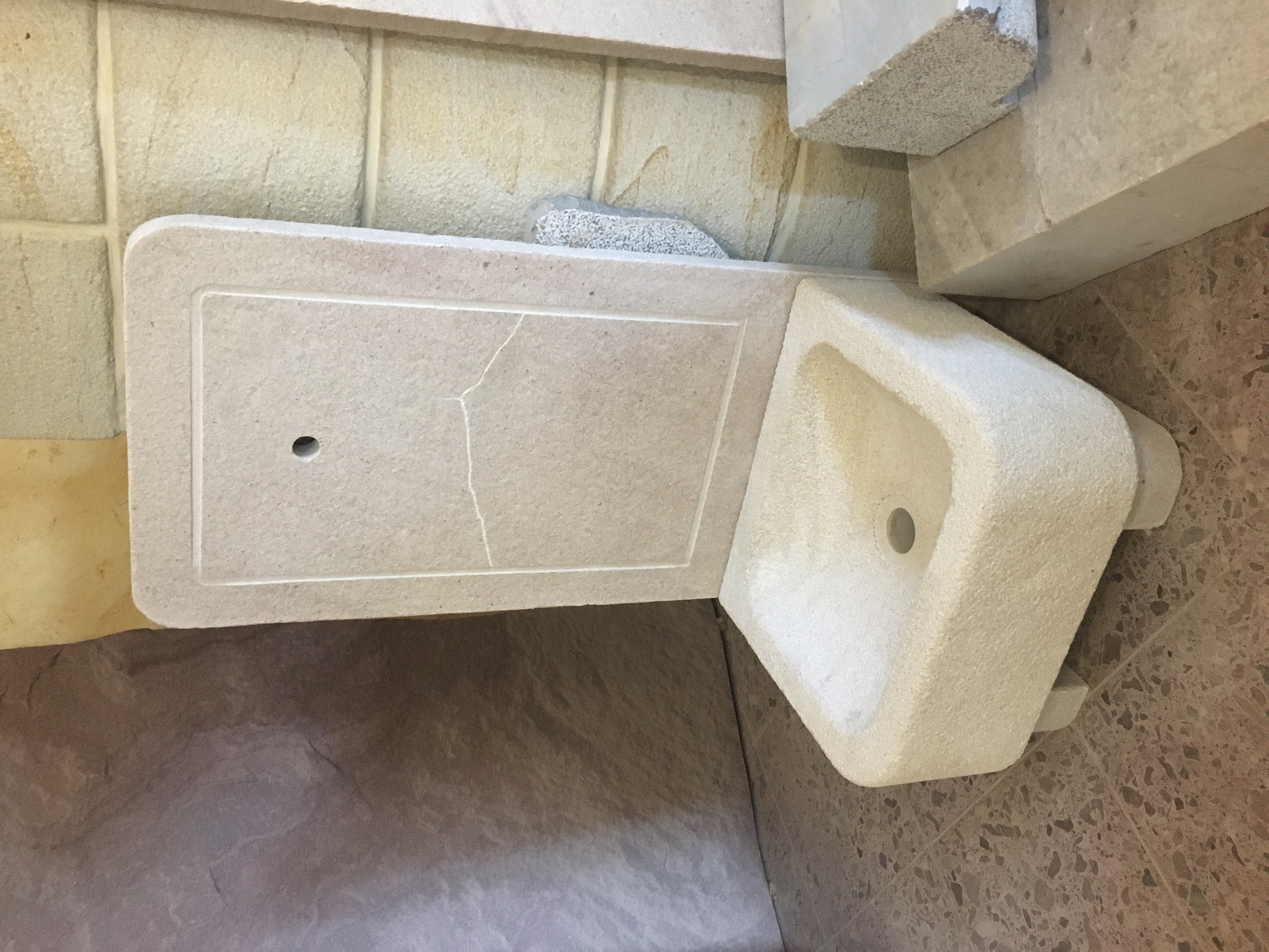Extraction de blocs capaples de grès et travail à façon sur le site, après extraction.