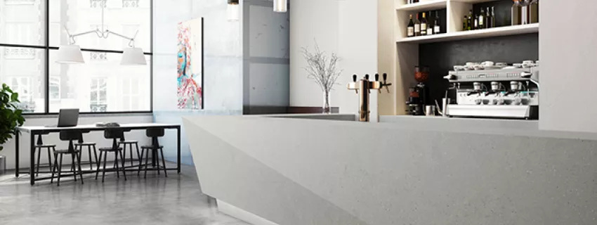 Le look industriel du béton s’associe à la flexibilité exceptionnelle d’HIMACS. La collection Concrete ouvre une multitude de nouvelles possibilités pour les architectes et les designers.