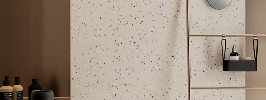 Les incrustations des nuances Volcanics ajoutent une touche de style à n’importe quel concept. Utilisé à grande échelle, le résultat est spectaculaire. Trois couleurs de la gamme Volcanics incorporent du contenu recyclé pour une solution écologique, avec un aspect luxueux de pierre naturelle.