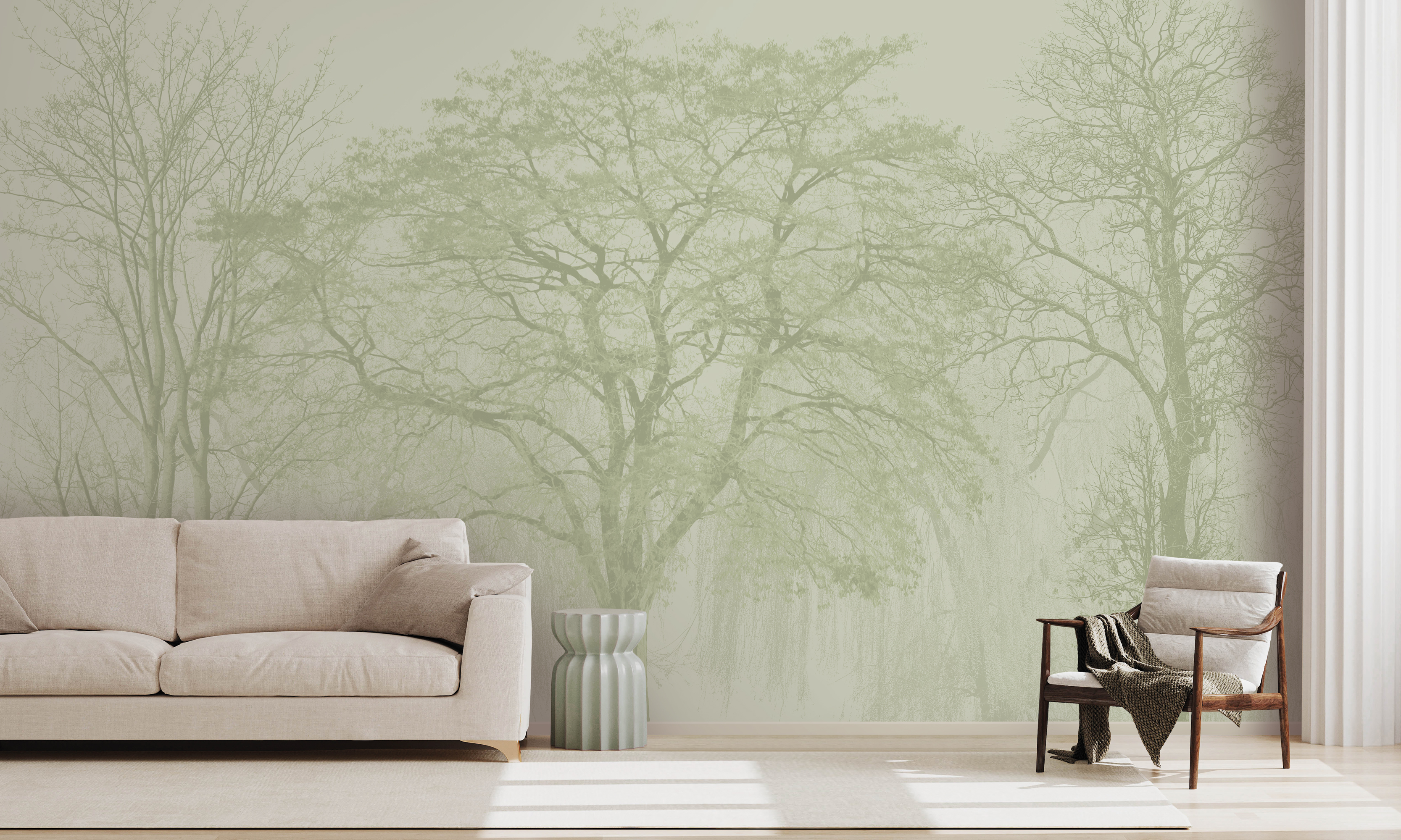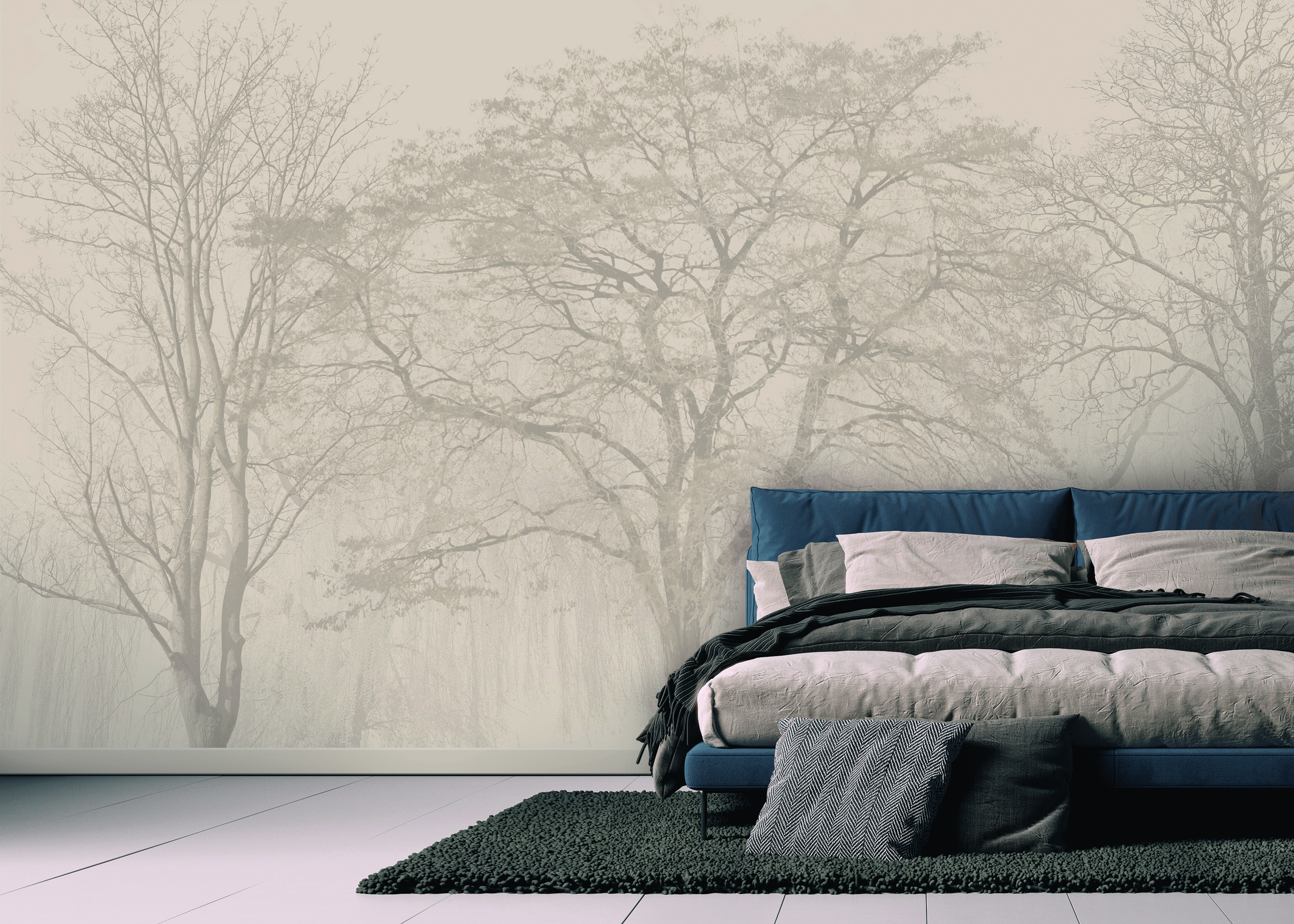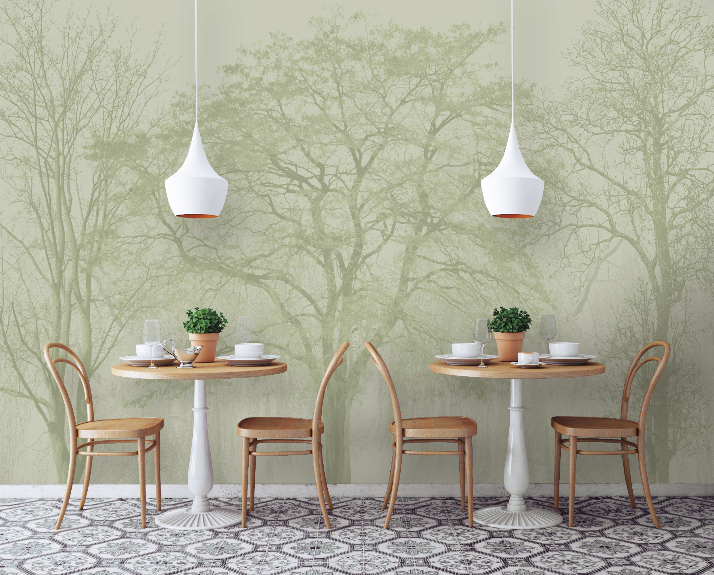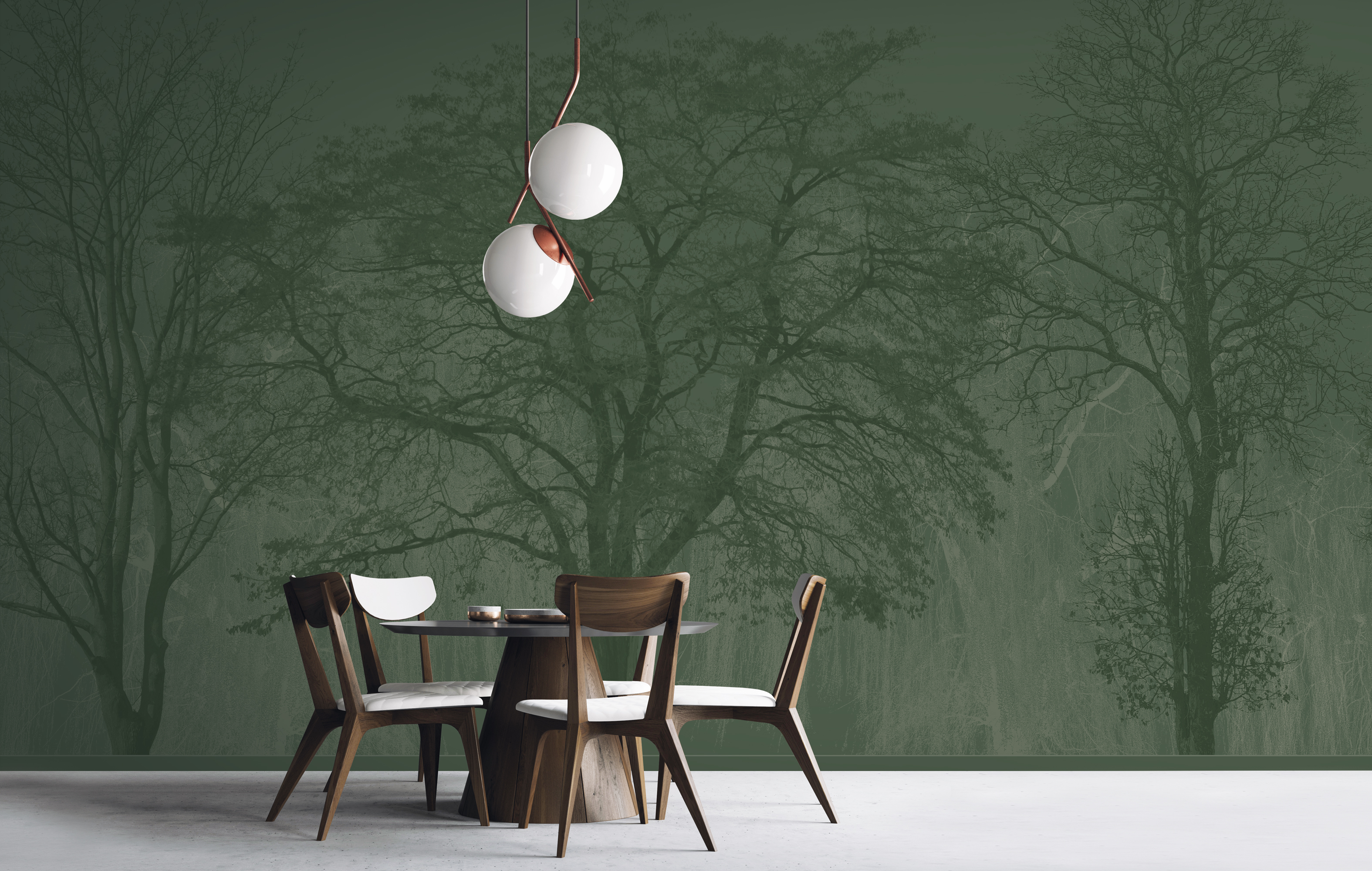 Le papier peint Silva met à l’honneur une nature sauvage. Une forêt de grands arbres se dessine sur le décor mural, en transparence. Le réalisme de la tapisserie est impressionnant, on dirait une vraie photographie.