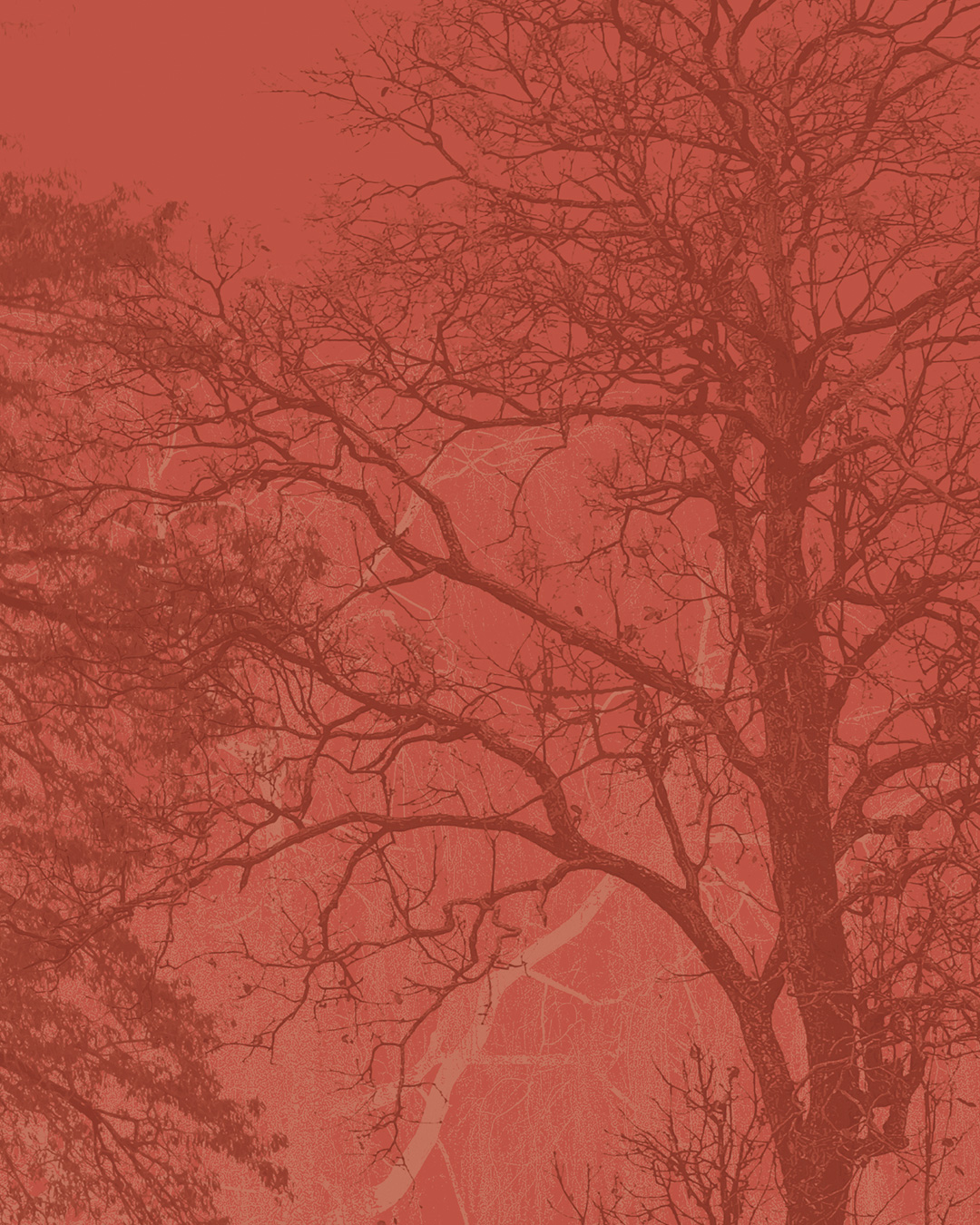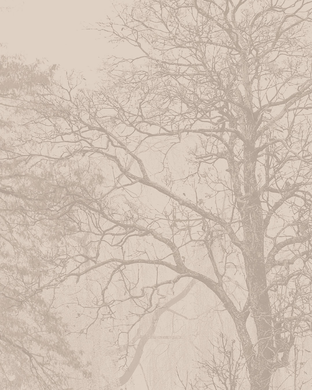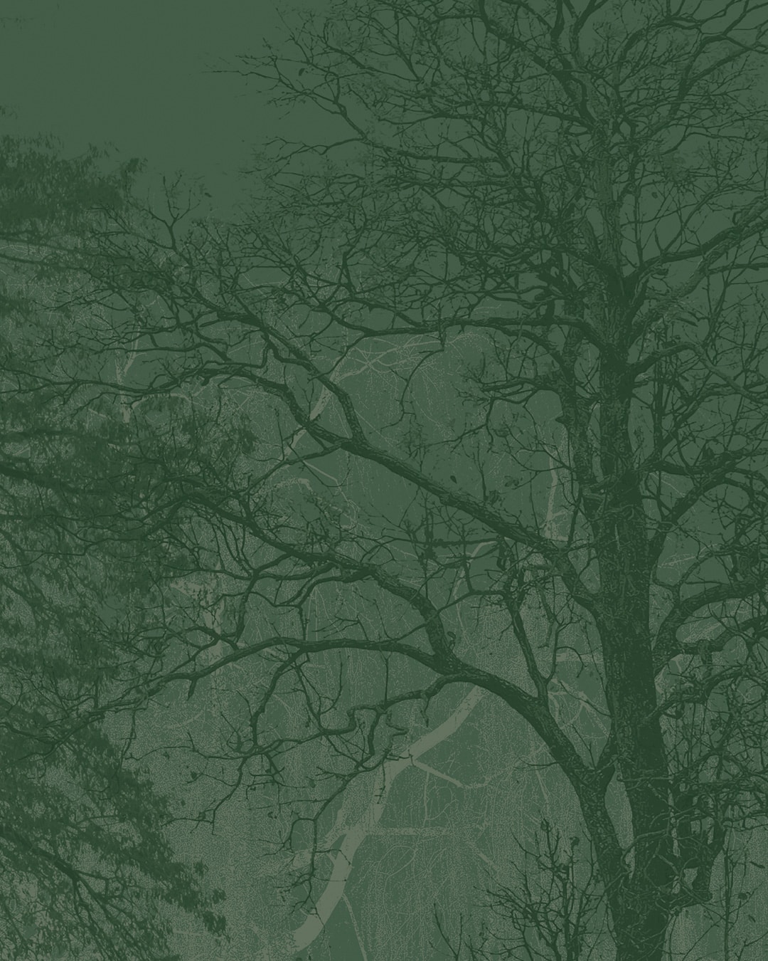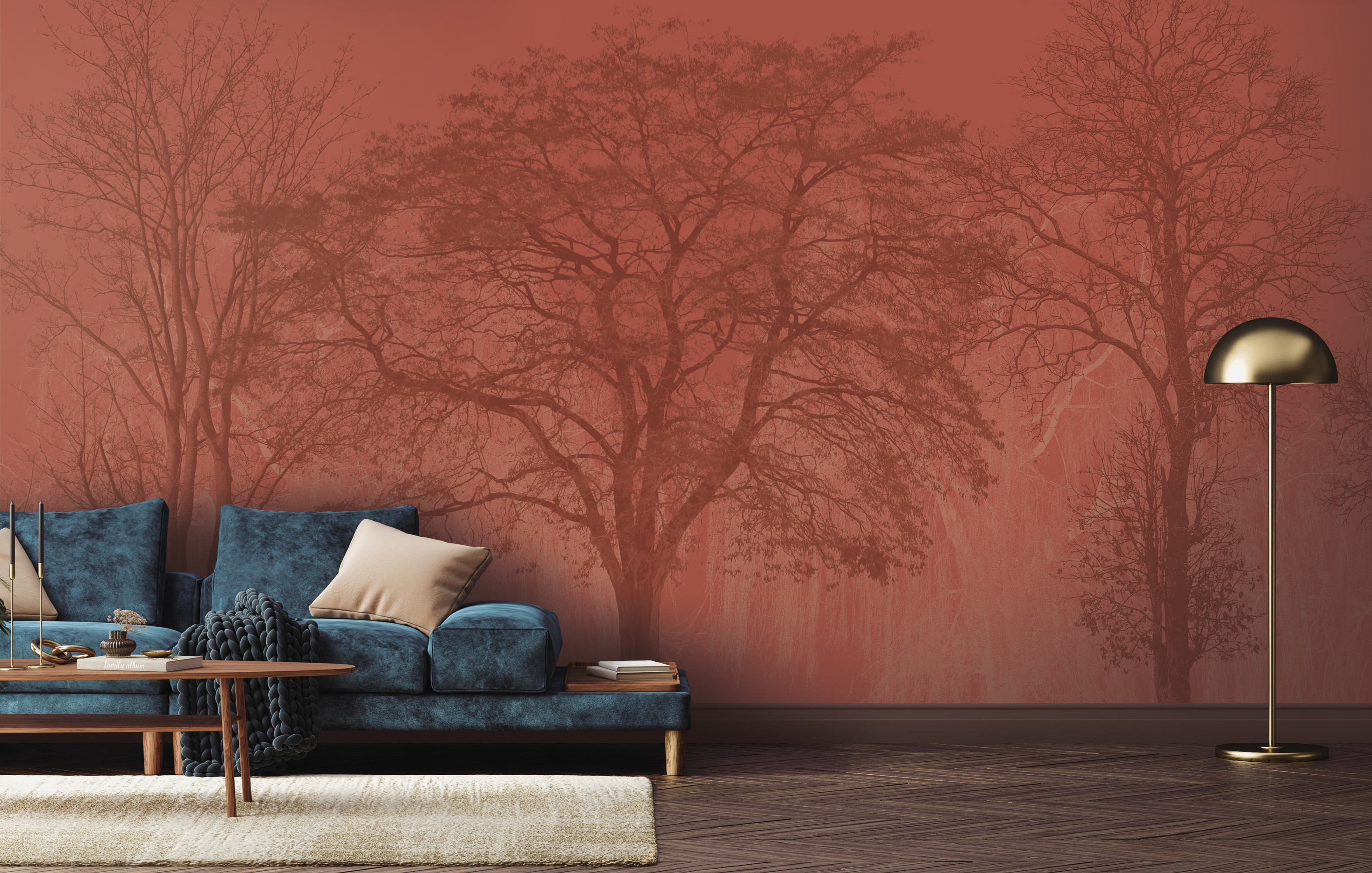 Le papier peint nous plonge au cœur d’un bois, à l’abri des arbres gigantesques. Le modèle se décline en plusieurs versions ajoutant un filtre coloré sur le papier peint : vert clair, rouge orangé, vert kaki et beige rosé. Les différentes teintes créent des univers particuliers qui changent l’ambiance du décor mural et végétal.