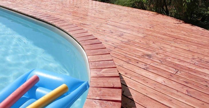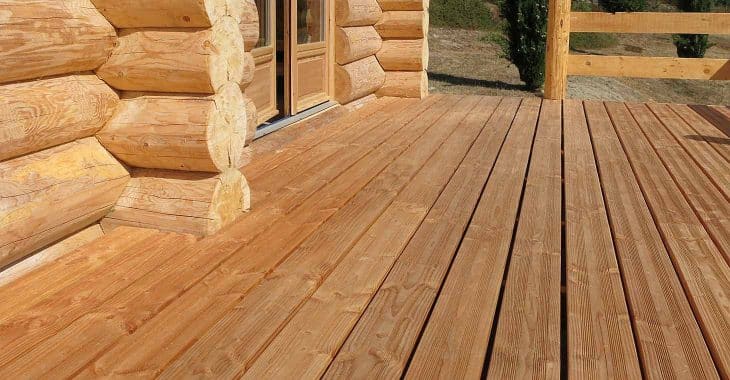 Une terrasse pin du nord avec ses nœuds marqués rustiques et un traitement autoclave de classe 4 marron chaud pour résister aux intempéries, insectes et champignons, durable et résistant.
