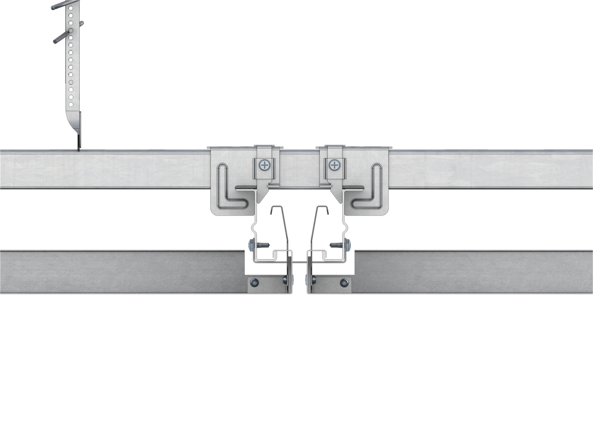 Le produit LMD-E 214 - Plafond suspendu à ossature invisible avec joint ouvert de Lindner est composé de : Acier .