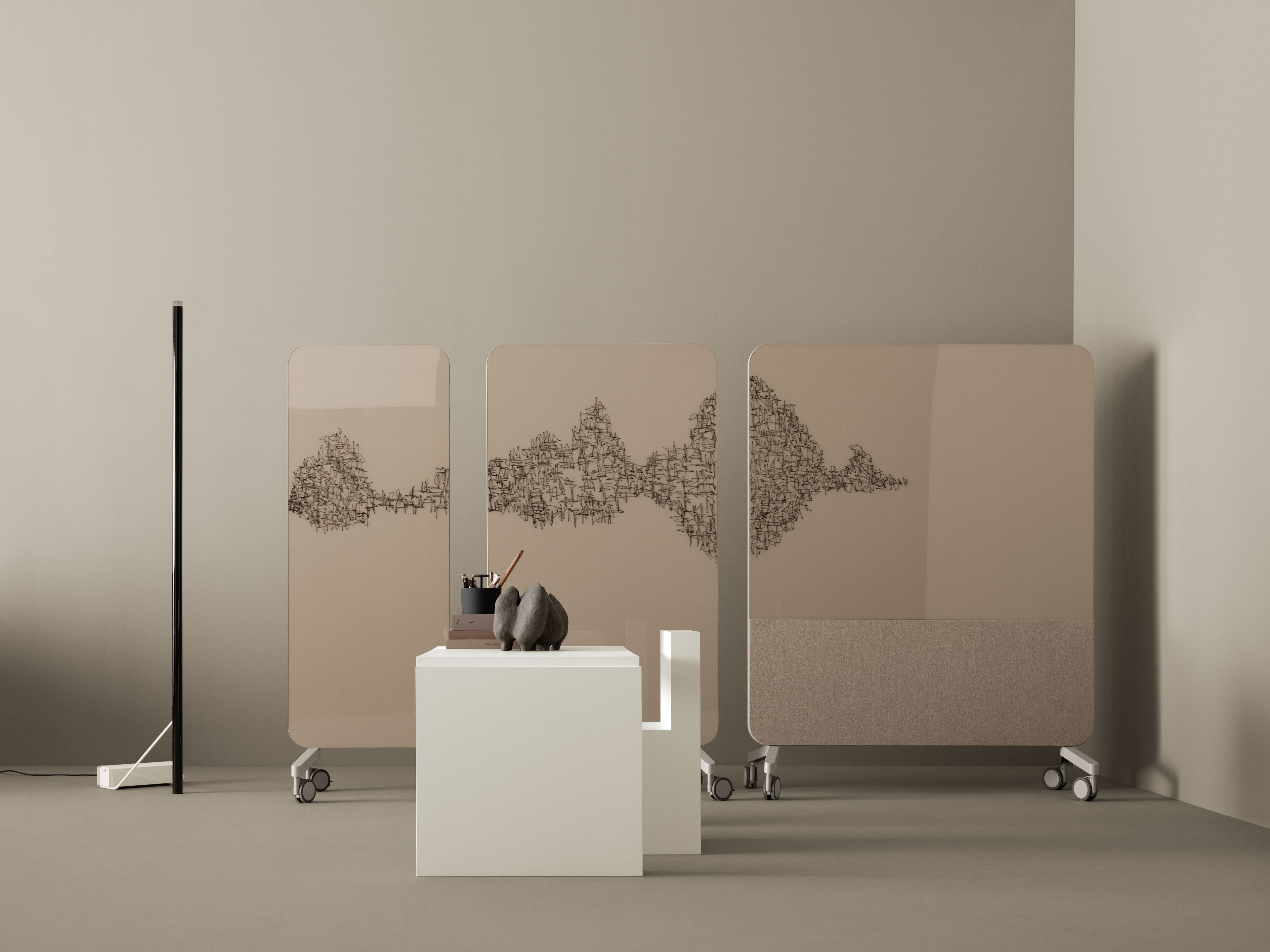 Le produit Mood Fabric Mobile. Tableau acoustique en verre et tissu du fabricant LINTEX classé dans la catégorie Equipements tertiaires et professionnels > Bureaux > Tableaux blancs et magnétiques est référencé dans la Matériauthèque digitale Materiaux.archi.