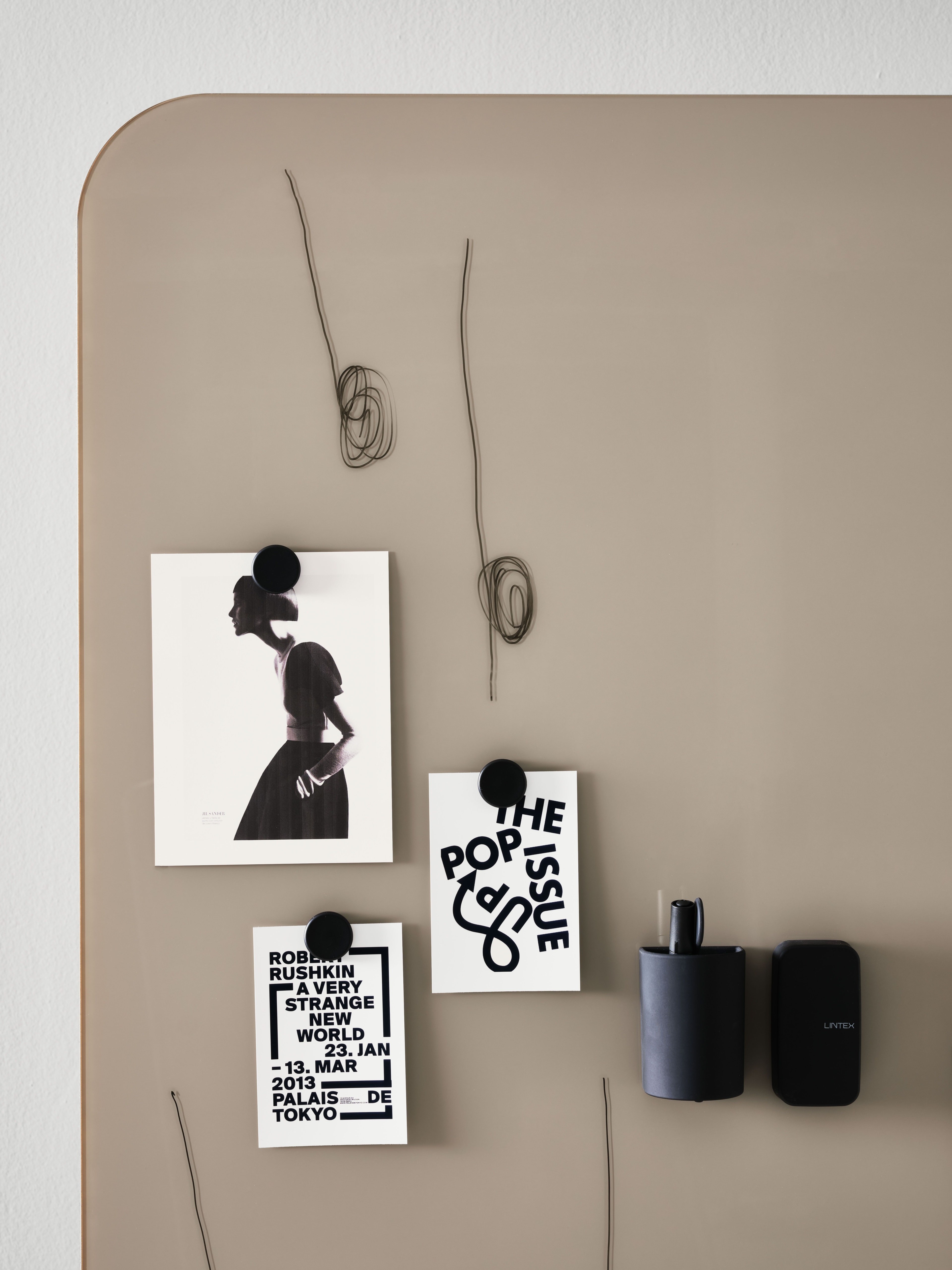 Le produit Mood Fabric Mobile. Tableau acoustique en verre et tissu de LINTEX est composé de : Verre .