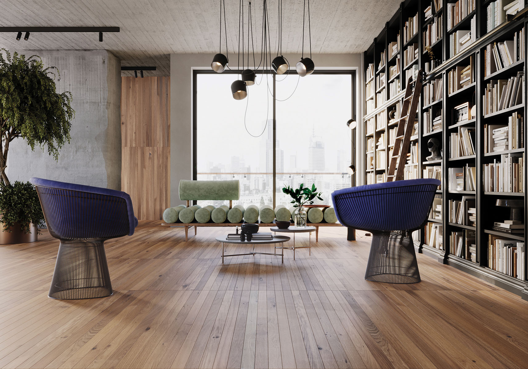 La collection Atelier Désir retravaille la dimension des lames: plus étroites et allongées comme ce qui caractérisait les parquets anciens où les axes allongés formaient ensemble un tissu original. Aujourd’hui Désir revit ces harmonies en les interprétant grâce aux finitions Héritage. Ces finitions enrichissent la matière grâce à un traitement thermique naturel pour profiter pleinement de toute l’authenticité du bois.