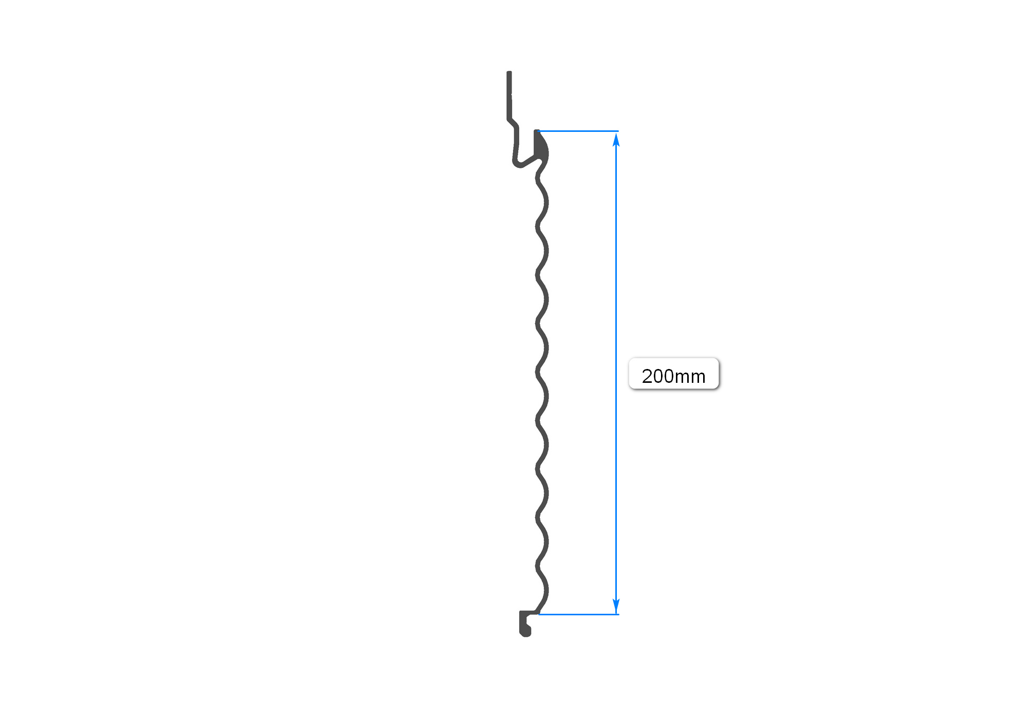 Le profilé aluminium extrudé Réf. LBV204 est composé de 10 ondes de 20 mm chacune, formant un élément modulaire de 200 mm.