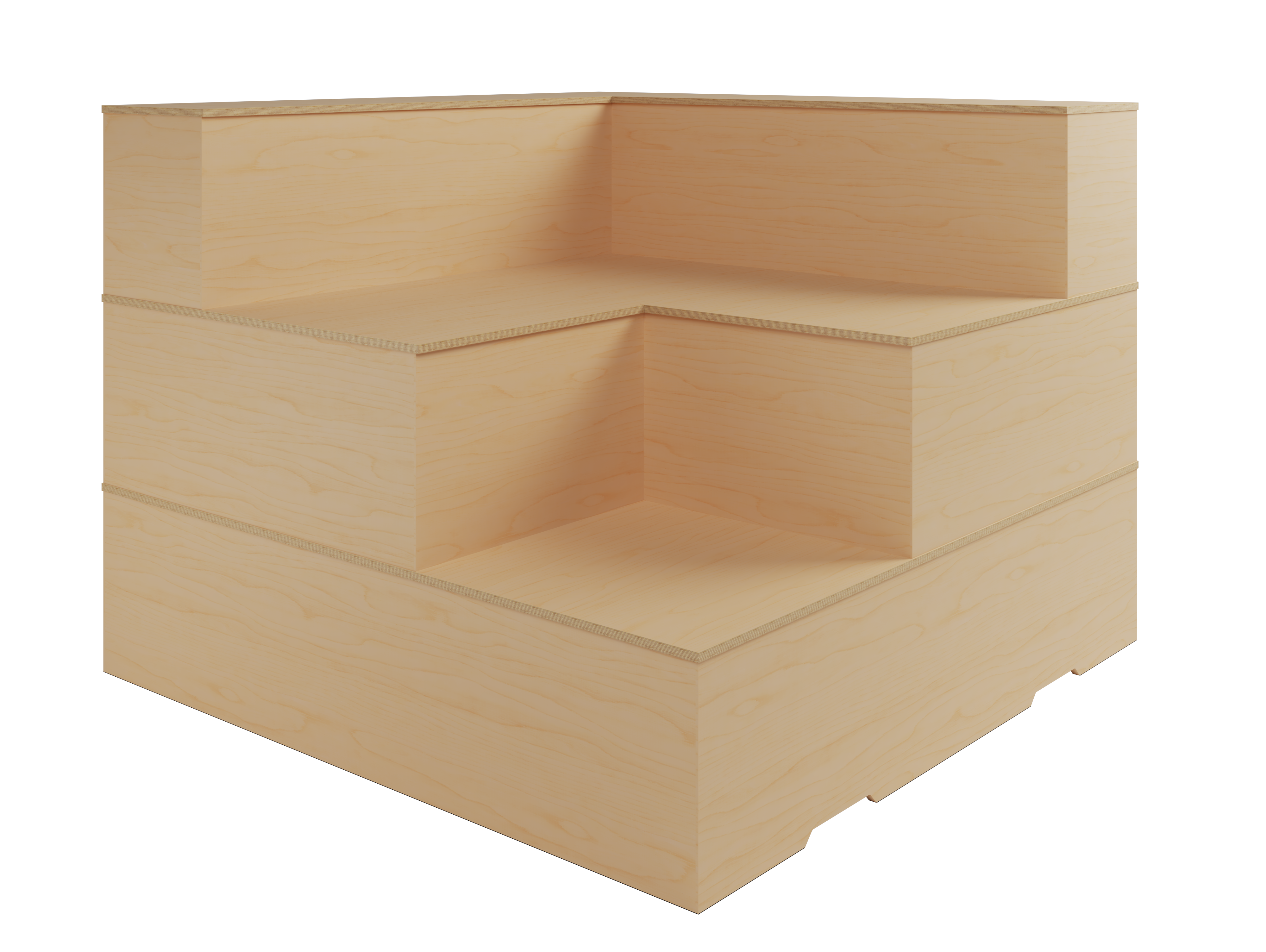 Et comme toute notre collection, cette estrade d’angle est éco-conçue en France à partir de contreplaqué de bouleau (certification FSC).
