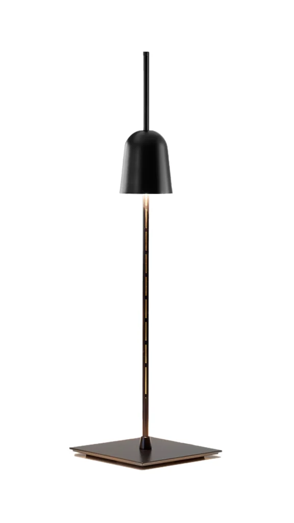 Intime, conceptuel, Ascent offre des nuances infinies d’intensité lumineuse, grâce au variateur axial très précis contrôlé par l’électronique montée à l’intérieur de l’abat-jour. Les circuits sur la tige envoient des informations à un microprocesseur qui réagit au mouvement vertical, ajustant le flux de lumière.