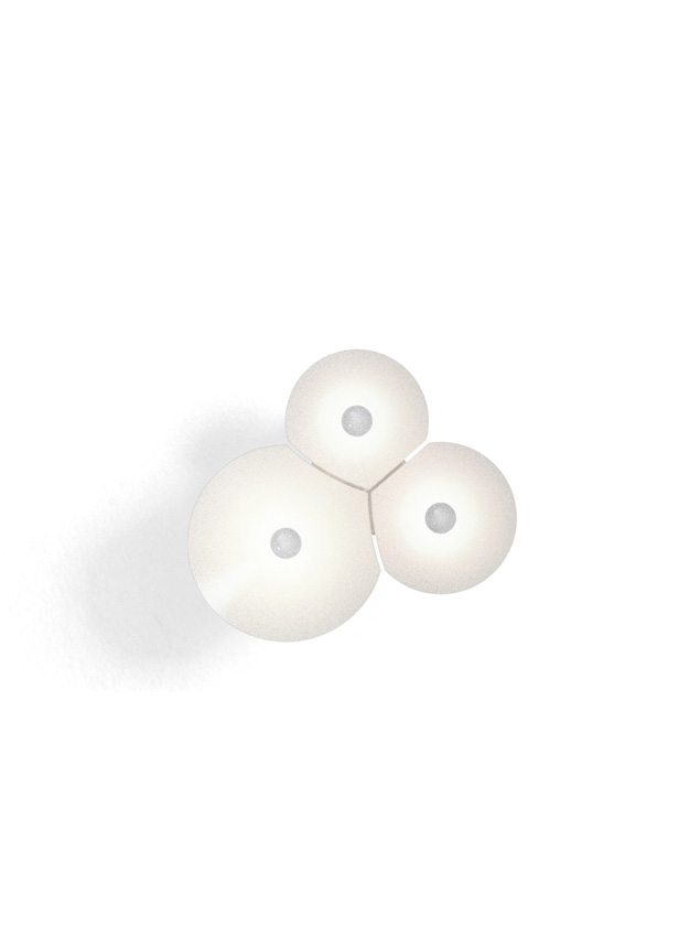 La nonchalance esthétique de Bulbullia – un objet léger, presque désincarné – est le résultat d’une étude technique approfondie et de l’utilisation d’un savoir-faire, de technologies et de matériaux de la plus haute qualité. Une série de paraboles de différentes tailles se croisent pour générer la forme géométrique caractéristique des bulles de savon ; Des formes coniques, larges et plates, chacune composée d’une silhouette en polycarbonate blanc, légèrement courbée pour prendre un caractère structurel.
