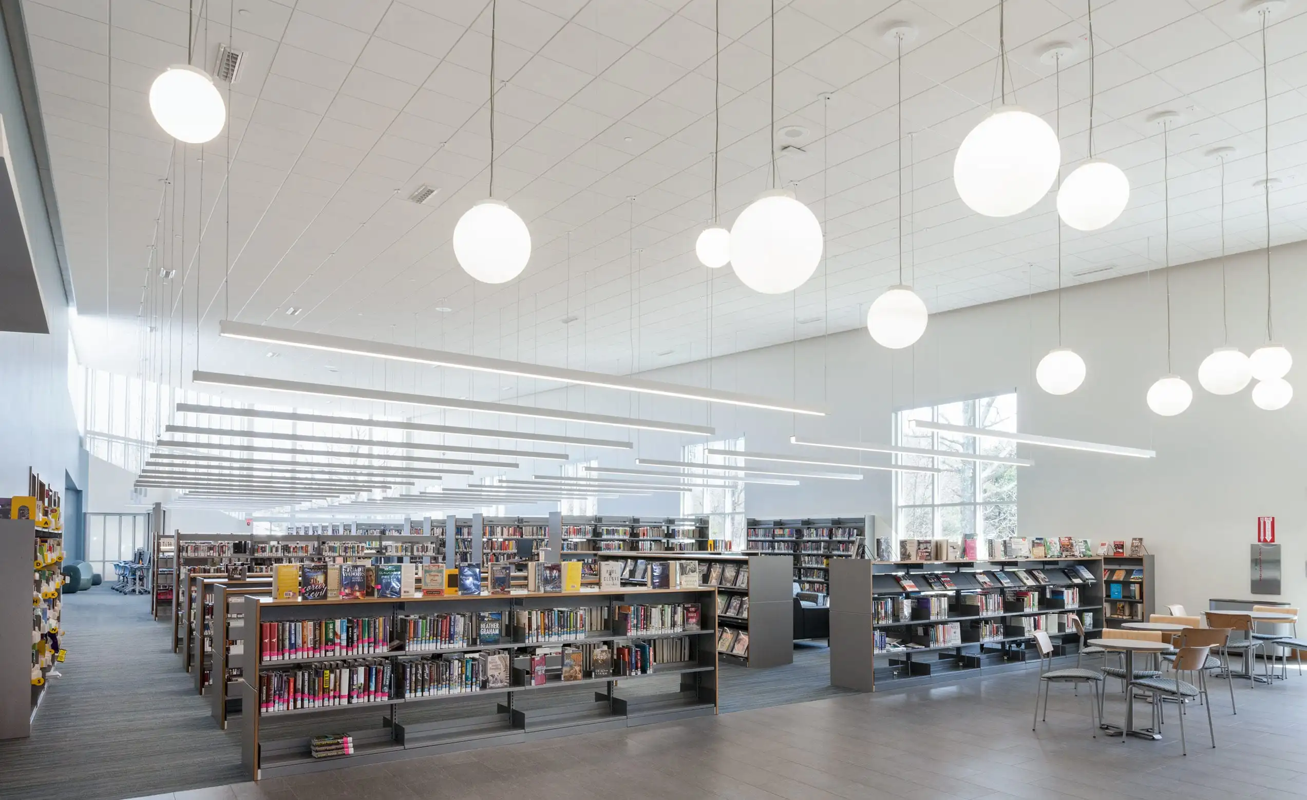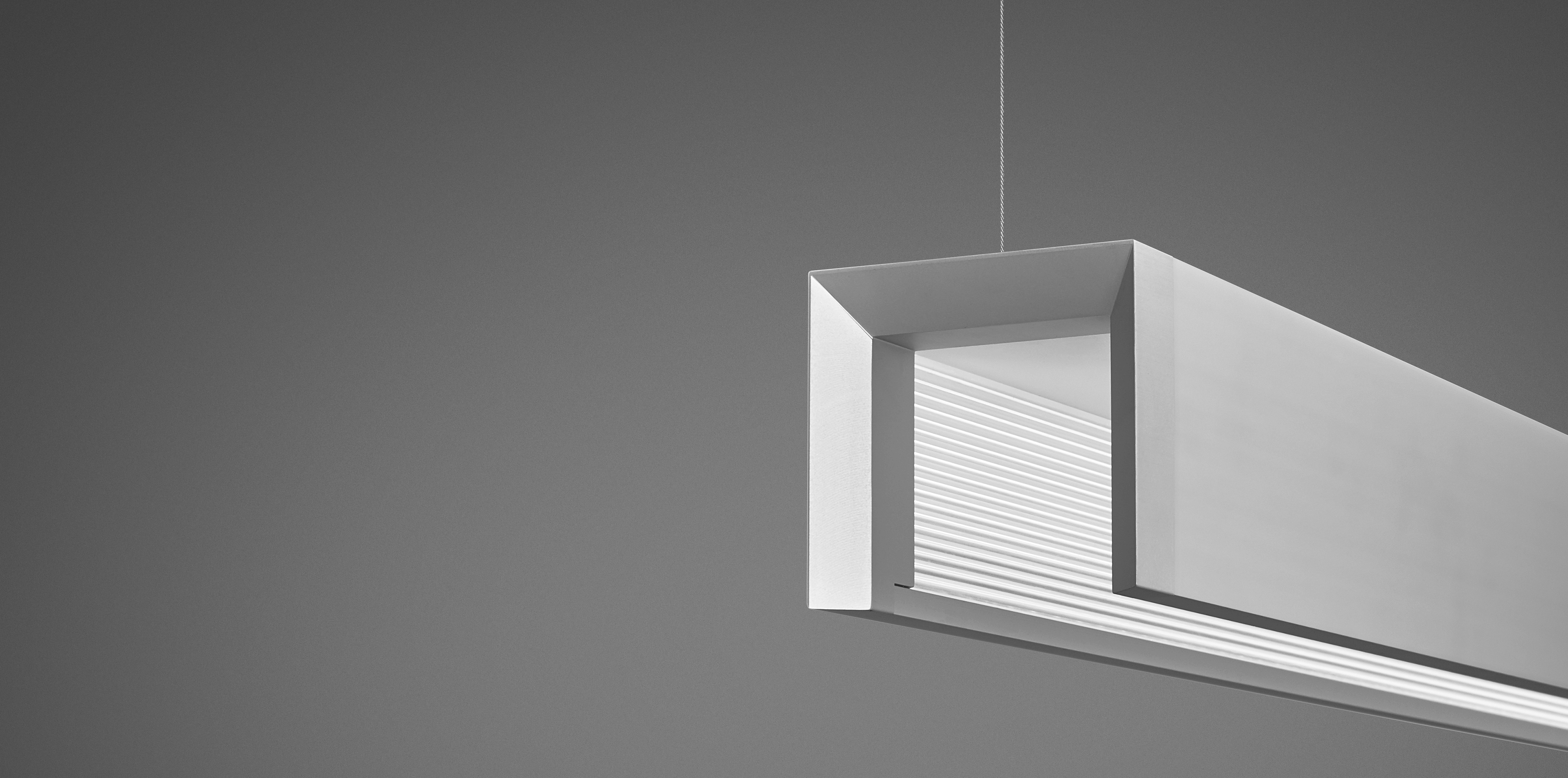 A linear LED suspended luminaire with an open architecture aesthetic creates unparalleled longitudinal clarity and transparency right through the fixture. Vertical optical structures with extraction elements deliver optical precision and control with complete absence of glare, balancing occupant comfort with high performance and value.