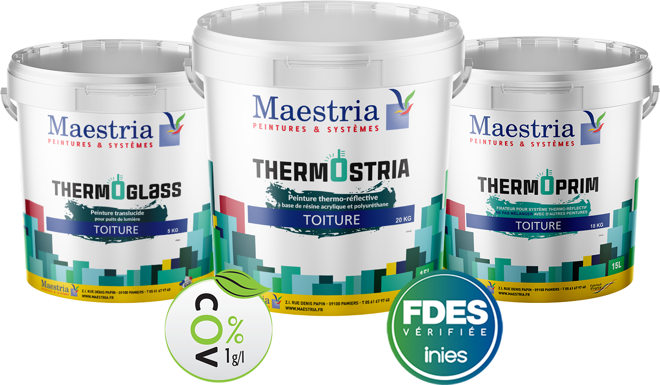 Le produit Thermostria | Cool roof | France du fabricant maestria classé dans la catégorie Revêtement mural extérieur > Enduits et peintures > Peintures à fonction particulière est référencé dans la Matériauthèque digitale Materiaux.archi.