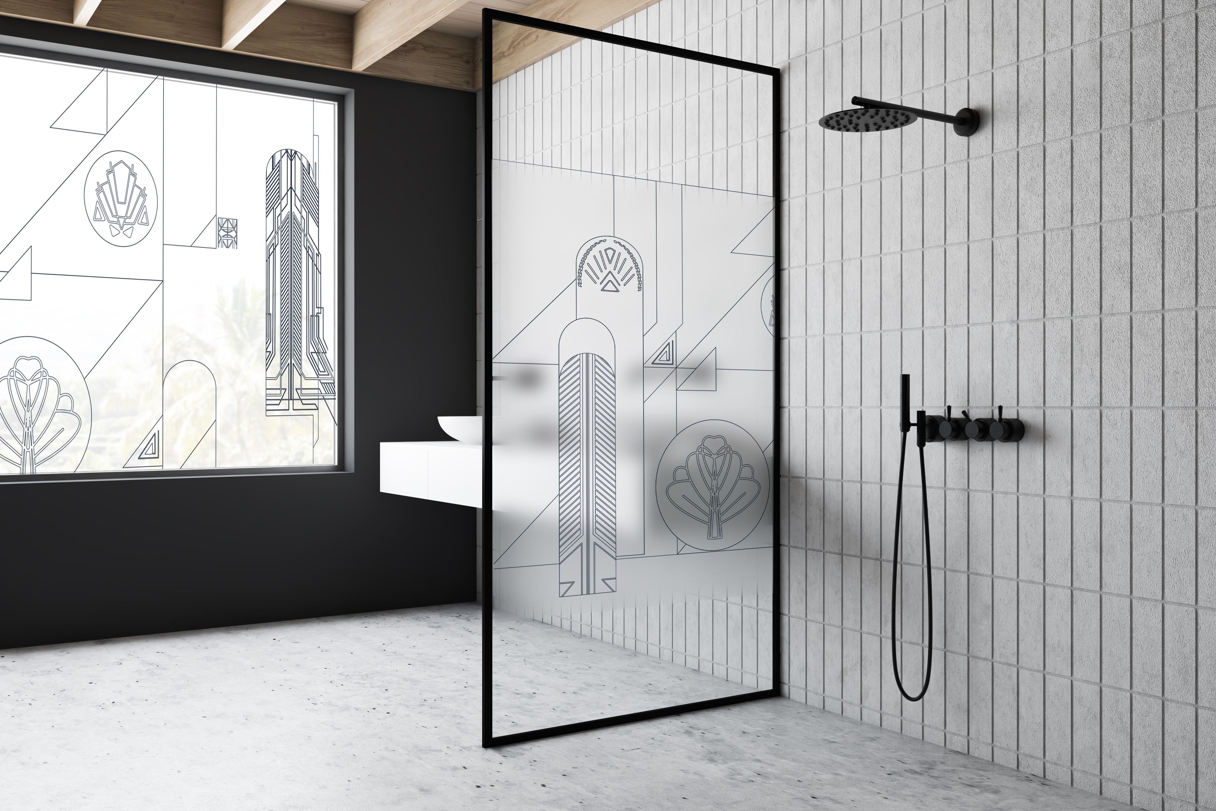 Le produit Vitrophanie, décoration de vitrage du fabricant Maison Les Muses classé dans la catégorie Décoration et mobilier > Décorations diverses > Décoration murale est référencé dans la Matériauthèque digitale Materiaux.archi.