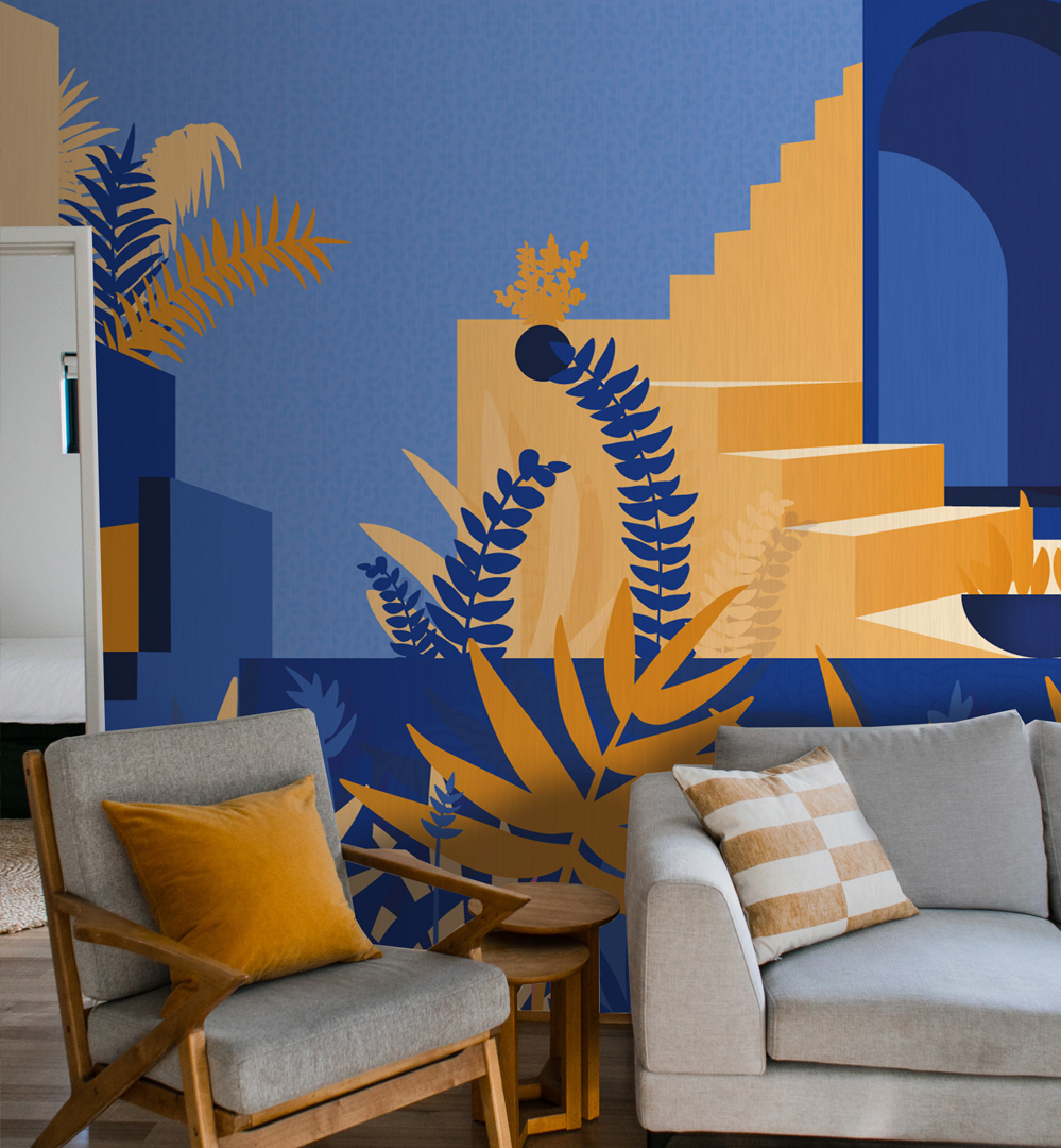 Le produit Cali – La Collection - Toile murale de Maison Les Muses est prescrit dans des projets de type : Hôtellerie Restauration .