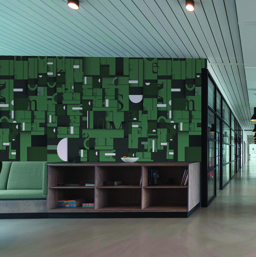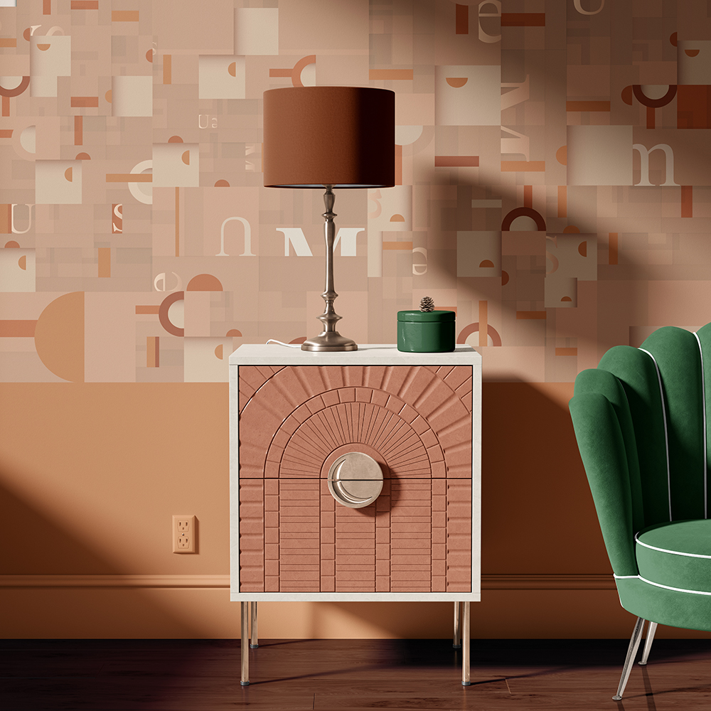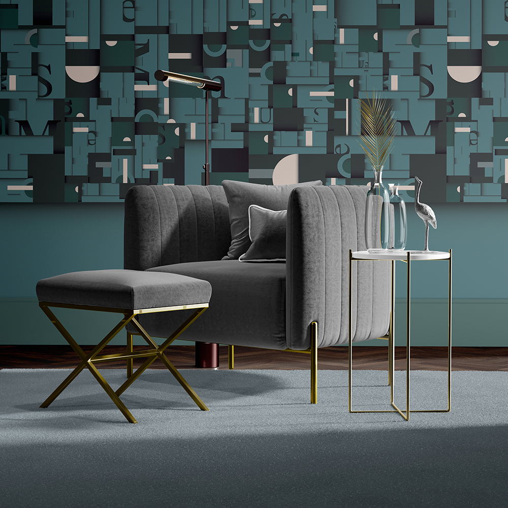 Le mot de la créatrice : « Les trompe-l’oeil sont un très beau moyen de travailler les espaces. Avec Seventies, j’ai voulu travailler les motifs typiques des années 70 en y ajoutant des effets de profondeur. »