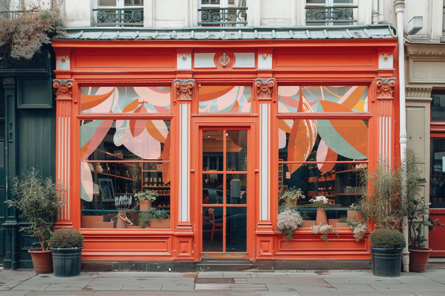 Chez Les Muses, nous pouvons créer des vitrophanies entièrement dédiées mais pour vous faciliter les choses, nous avons également imaginé une Collection de décors entièrement personnalisables pour des vitrophanies design.
