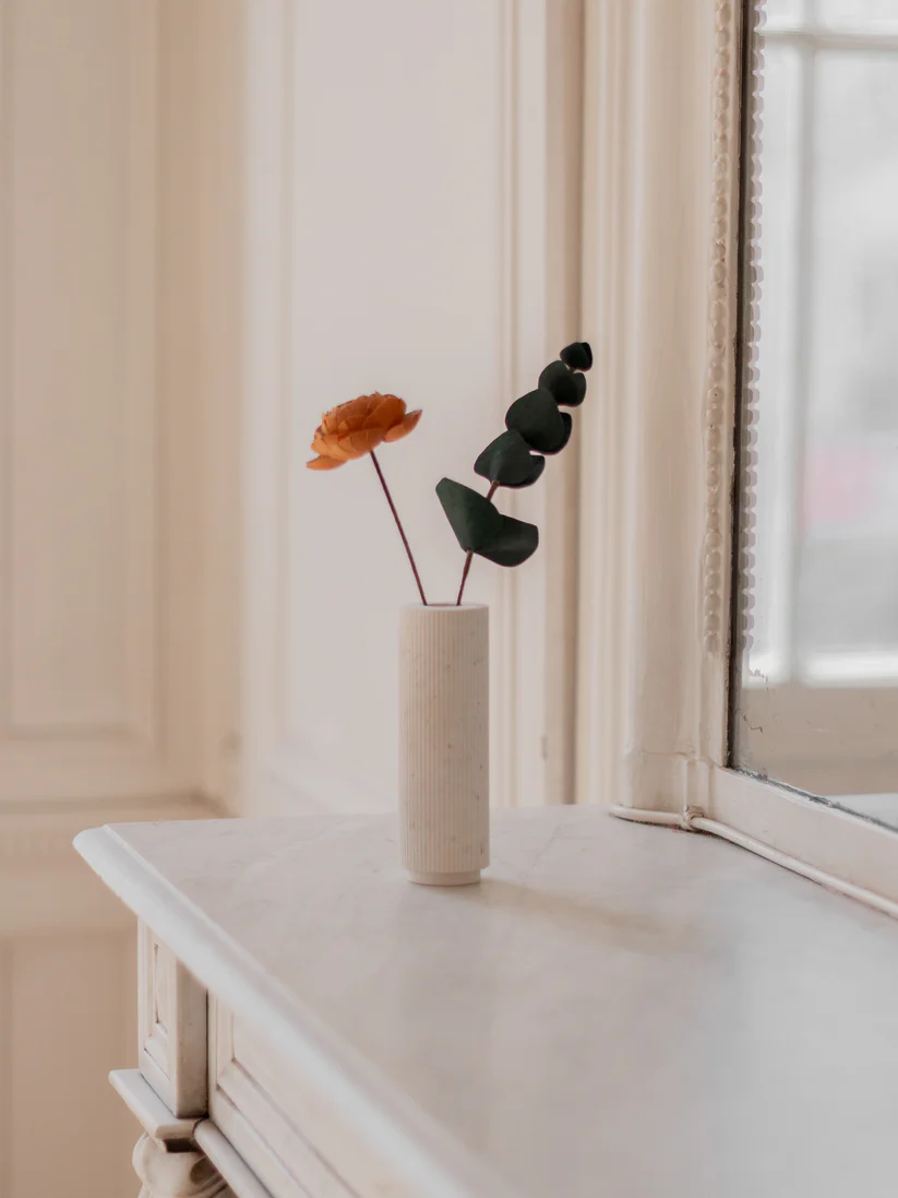 Réalisés à partir de coquillages bretons revalorisés et selon un savoir-faire artisanal, le soliflore pour fleurs séchées de la gamme COLOSSE est dessiné par nos équipes pour mettre en valeur vos tables et vos intérieurs.