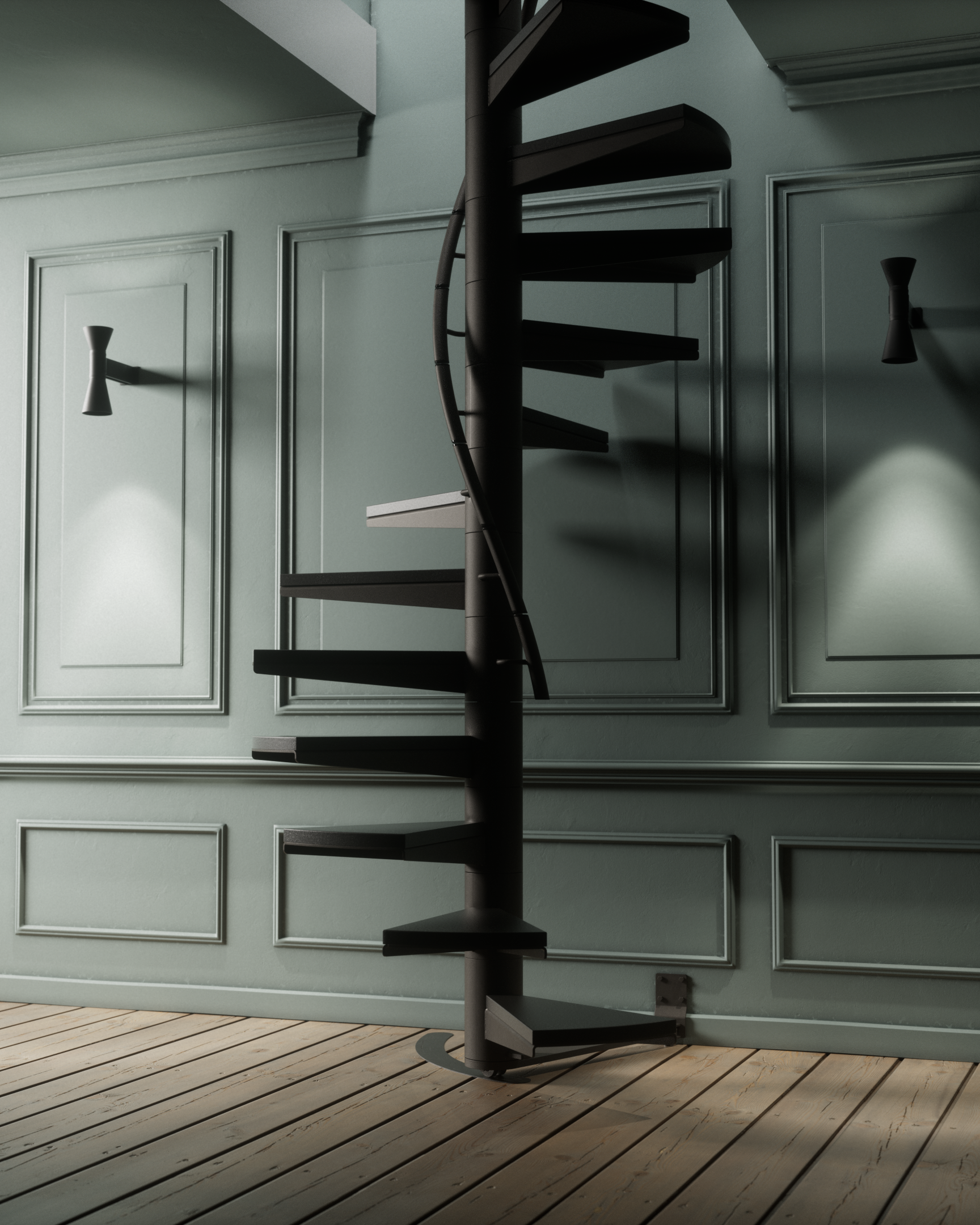 Escalier hélicoïdal repliable, design et sur mesure • Manufactura de Manufactura