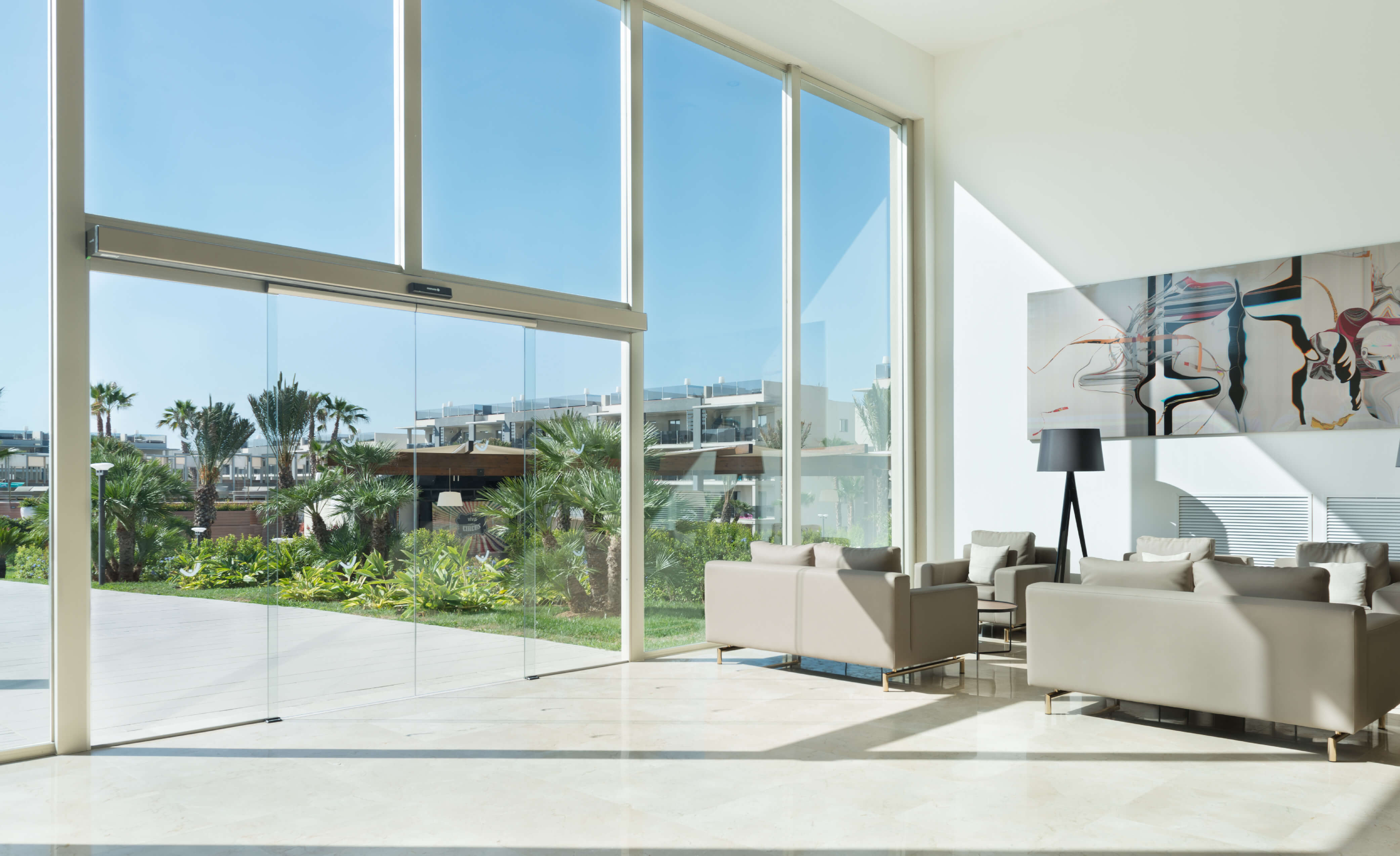 Les portes automatiques coulissantes standard sont idéales pour les environnements où le passage de personnes est intense. Elles offrent une solution entièrement fonctionnelle et de haute qualité, conçue pour assurer une meilleure intégration dans l'environnement architectural et faciliter le passage des personnes sans contact avec la porte.