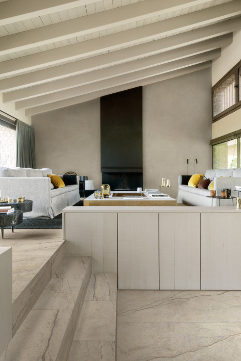 Mystone Silver Root libère le caractère affirmé de la pierre naturelle d'inspiration en présentant des veines marquées, imprimées sur un fond aux nuances intenses. La technologie 3D Ink, utilisée dans le processus de production, donne des veines très profondes et riches de détails, assurant ainsi un rendu hautement réaliste. À Grigio, la couleur typique de la pierre naturelle, viennent s'ajouter deux couleurs plus claires, Bianco et Beige, toutes deux chaudes. Toute la palette chromatique est déclinée dans les quatre formats 90x180, 120x120, 60x120 et 60x60 ainsi que sur la surface R10, pour un produit résistant et polyvalent. Deux mosaïques complètent la collection : la mosaïque classique 30x30 et la mosaïque Prisma 30,3x30,3, composée de tesselles aux côtés irréguliers. Toutes deux existent dans toutes les couleurs de la collection. Forte de ces qualités, Mystone Silver Root permet de concevoir des environnements à la personnalité marquée, où la part belle est faite au sol.