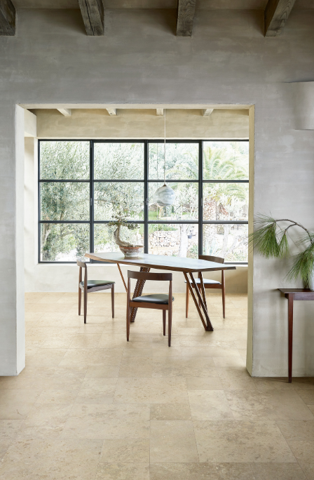 Quatre couleurs renvoient à autant de pierres naturelles, allant de tons chauds à des gradations plus froides, avec des variations marquées de ton et de graphisme, plus évidentes dans les couleurs foncées.