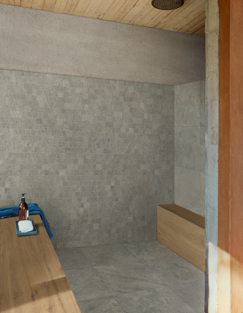Quatre formats proposés, de 60x120 à 30x30, modulables et modulaires, avec des surfaces naturelles, Velvet et Outdoor, en plus de l'option extra-épaisseur 20 mm, de la mosaïque de petits éléments carrés et rectangulaires - Spaccatella - en modules 30x60 et d'une gamme complète de pièces spéciales y compris pour piscines.