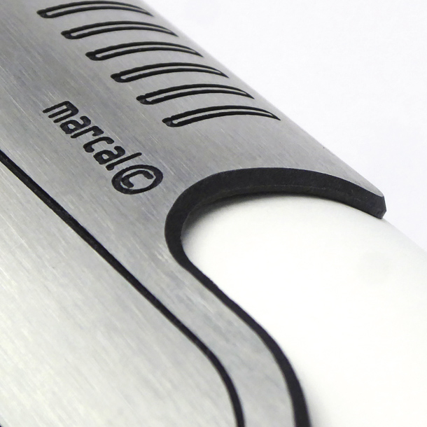 Le produit pasamano | design esteban marino du fabicant marcal signalétique a une épaisseur de 2 mm, une longueur de 140 à 290 mm,