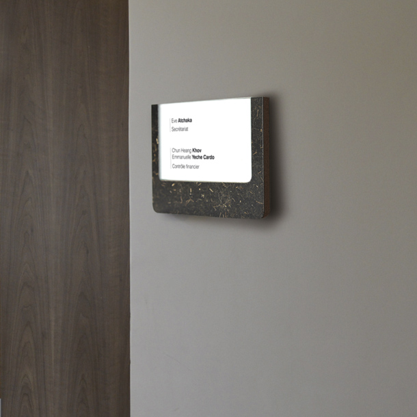 La gamme Linua© marcal propose une signalétique écologique et design pour soutenir l'architecture durable. Fabriquée en France avec le biomatériau kairlin®, qui combine fibre de lin/chanvre, résine végétale et liège naturel, cette signalétique est à faible impact environnemental. Le kairlin® est recyclable, compostable et ne génère pas d'émanations chimiques.