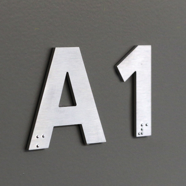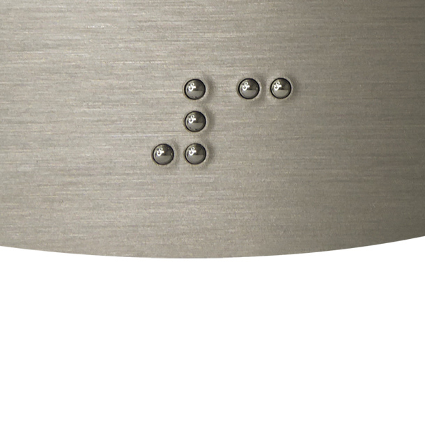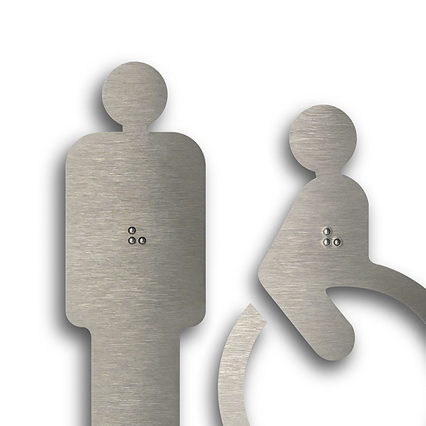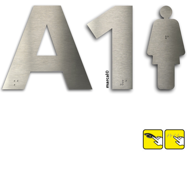 - Accessibilité : Les pictogrammes et caractères incluent une traduction en braille et un relief tactile. Les billes de braille sont en acier inoxydable 316L.