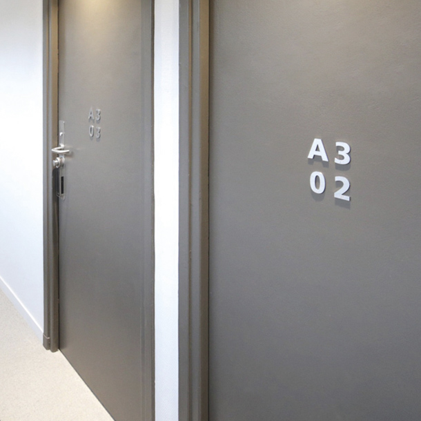 - Applications : Conviennent pour les sanitaires (homme, femme, handicapé), ascenseurs, escaliers, points d'information, accès interdit, numéros d'étage, zoning, et autres usages divers comme les pictogrammes pour vélo, douche, poubelle, local technique, etc.