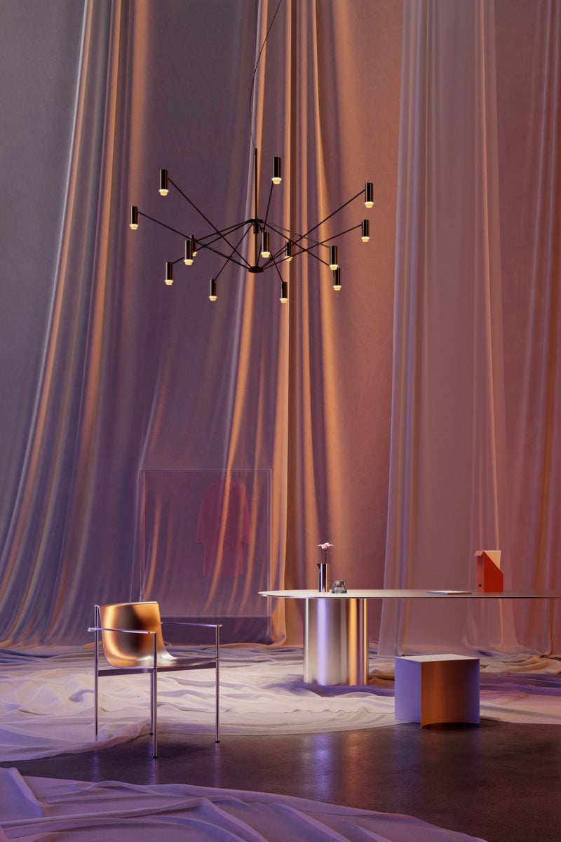Dépliez la lumière ou pliez-la. La dernière création de PerezOchando est une lampe flexible de grand format conçue pour s'adapter aux différentes exigences d'éclairage des grands espaces.