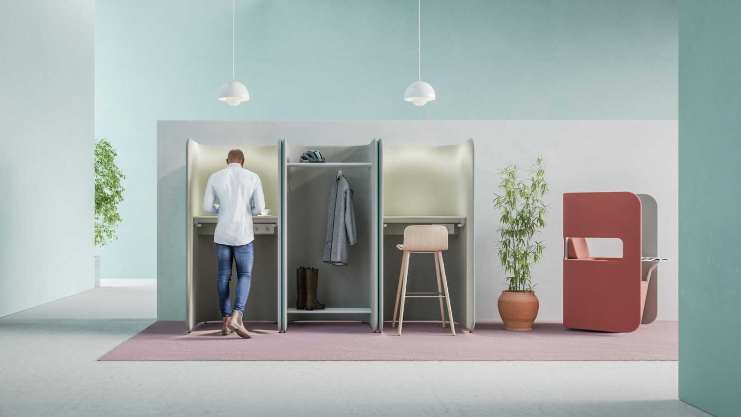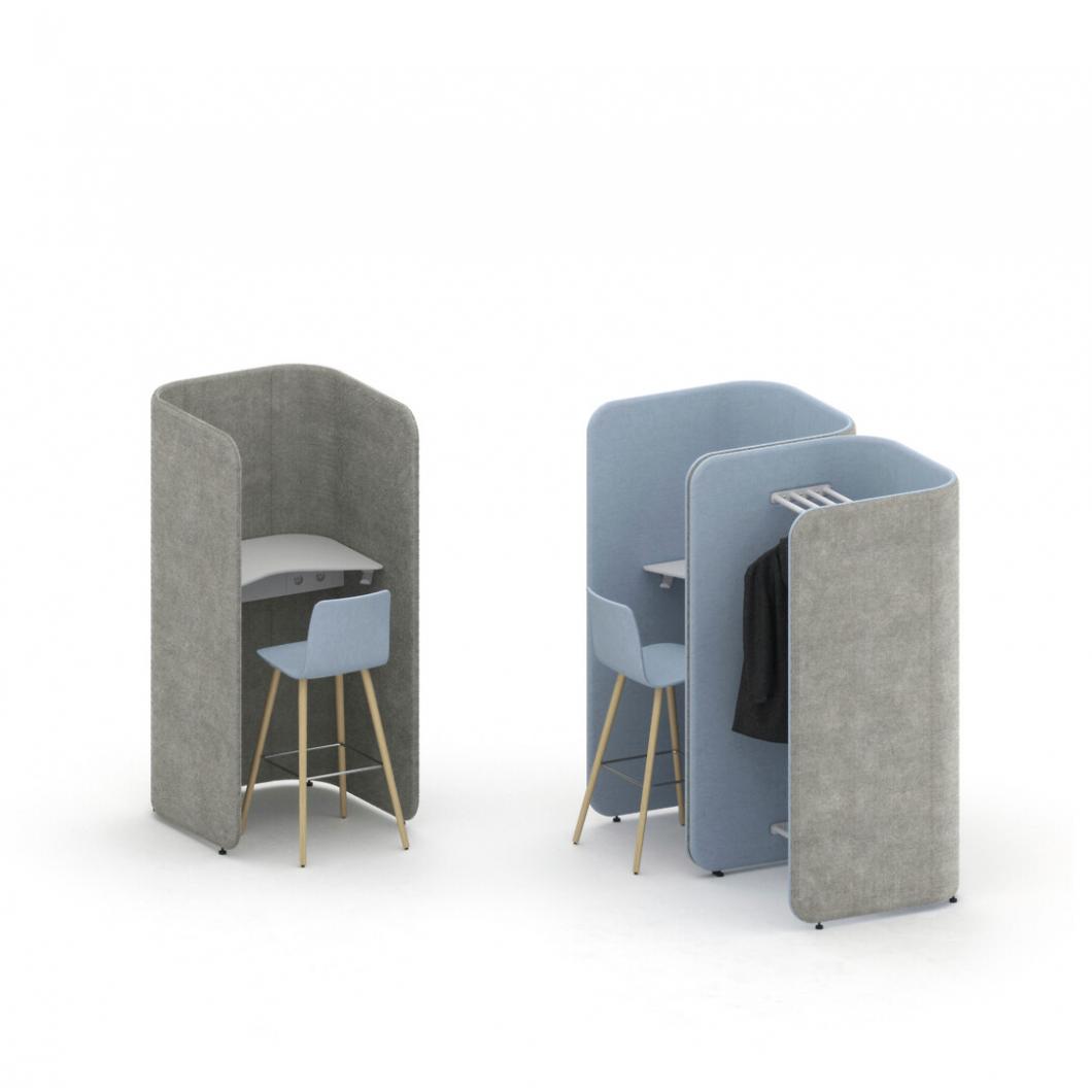 PodWork Xpress est un poste de travail pour le travail à court terme. La sélection comprend deux unités de poste de travail, debout ou assise, ainsi qu’une unité de rangement de vêtements. Des espaces de travail privés pour des individus ou pour des équipes plus importantes peuvent être créés en choisissant soigneusement l’emplacement des postes de travail.