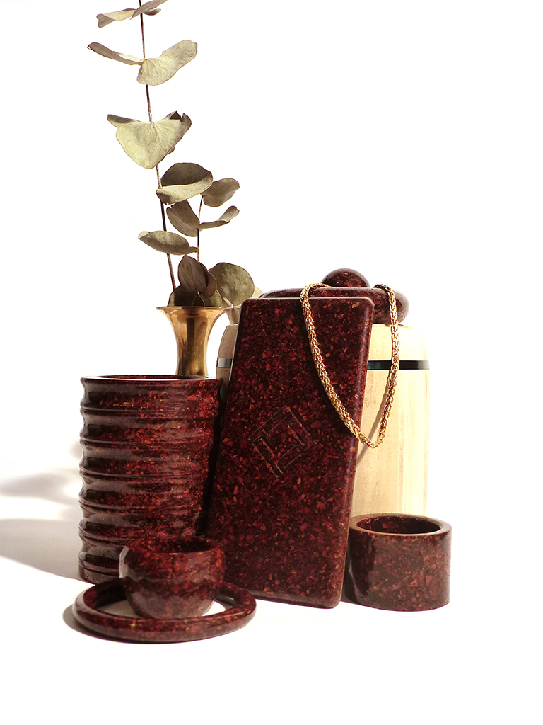 Notre gamme végétale permet de valoriser les résidus de production des artisans français. Les matières organiques utilisées dans nos matériaux contribuent à notre bien-être grâce à leur aspect naturel. Pour personnaliser le rendu visuel de nos pièces, nous pouvons faire varier la taille de la matière première, ajouter des pigments colorés et jouer sur la texture et la finition. Nos matériaux aux multiples propriétés s’intégreront parfaitement dans vos projets créatifs.