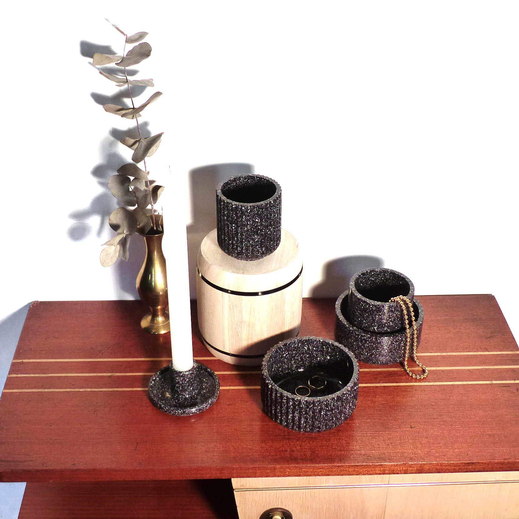 Si certains utilisent les coquilles de moules pour remplacer le sable dans le béton, avec Materialys, nous les sublimons en les utilisant dans la conception de notre matériau moucheté d’un bleu profond qui rappelle les fonds de l’océan ou un ciel étoilé.