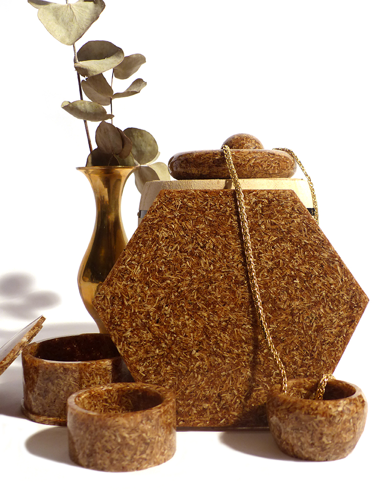 Notre gamme végétale permet de valoriser les résidus de production des artisans français. Les matières organiques utilisées dans nos matériaux contribuent à notre bien-être grâce à leur aspect naturel. Pour personnaliser le rendu visuel de nos pièces, nous pouvons faire varier la taille de la matière première, ajouter des pigments colorés et jouer sur la texture et la finition. Nos matériaux aux multiples propriétés s’intégreront parfaitement dans vos projets créatifs.