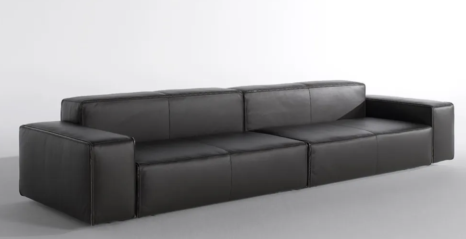 Disponible en tant que fauteuil, canapé ou canapé modulaire, le cadre en bois est rembourré de mousse de polyuréthane de différentes densités et d’un rembourrage à double couche, pour plus de confort, et recouvert d’un cuir souple exquis.