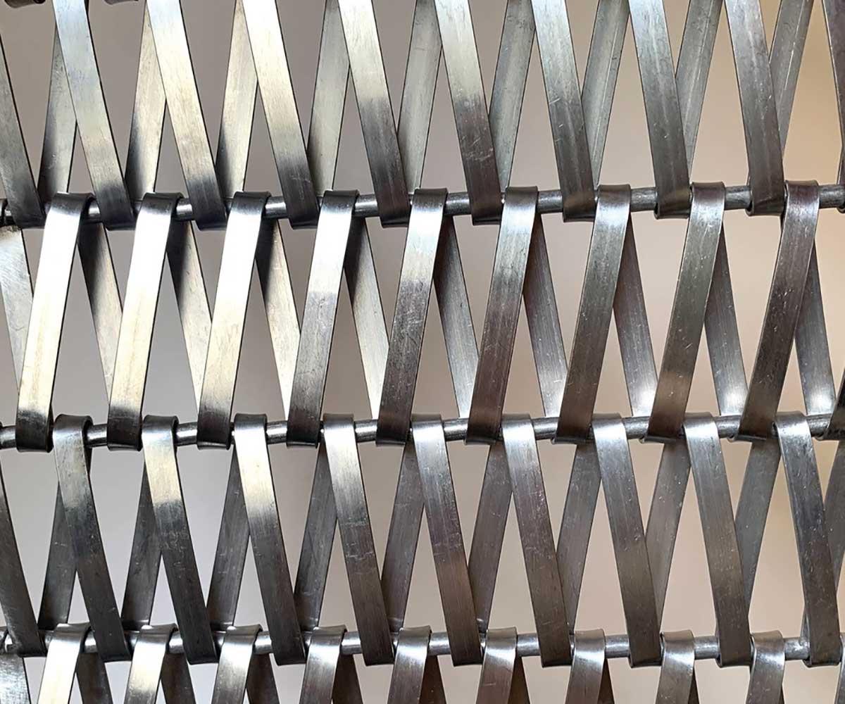 Très effilée, cette maille aux grandes spires plates reflète la lumière au gré de la journée. Robuste, flexible et moderne, elle habille vos murs et façades. Elle se pose aussi bien à l’intérieur qu’à l’extérieur et permet de couvrir de grandes surfaces. Selon son degré d’ouverture et la hauteur de la spire, elle est aussi utilisée comme brise soleil.