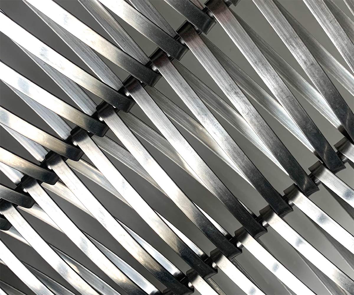Très effilée, cette maille aux grandes spires plates reflète la lumière au gré de la journée. Robuste, flexible et moderne, elle habille vos murs et façades. Elle se pose aussi bien à l’intérieur qu’à l’extérieur et permet de couvrir de grandes surfaces. Selon son degré d’ouverture et la hauteur de la spire, elle est aussi utilisée comme brise soleil.