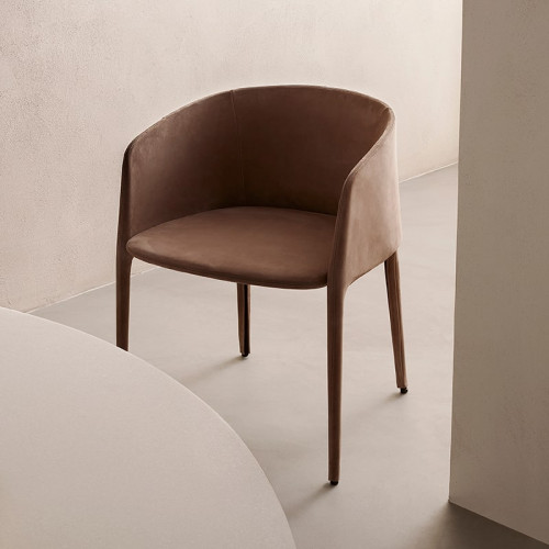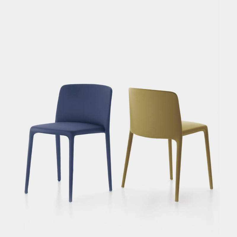 La chaise et le fauteuil Achille sont dotés d'un revêtement entièrement amovible en tissu ou en cuir, proposé dans différentes variantes et nuances.