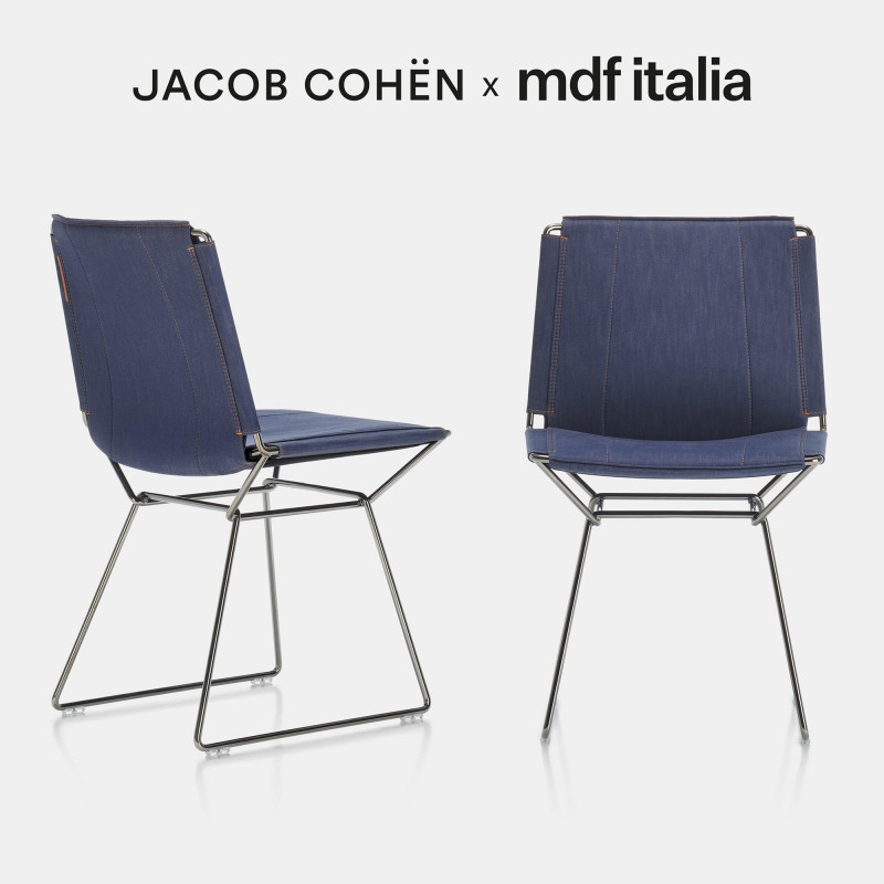 Le design essentiel de MDF Italia rencontre le savoir-faire exquis de Jacob Cohën dans Neil Denim, la nouvelle édition denim de la chaise iconique de Jean Marie Massaud.