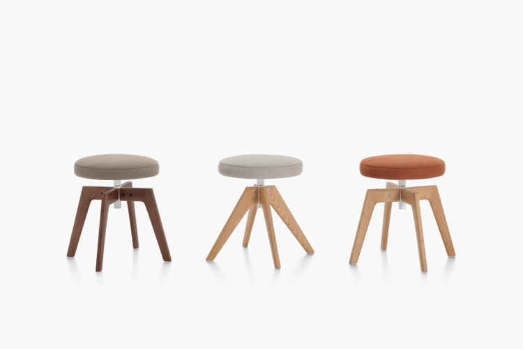 Les poufs Flow sont conçus pour la maison, le bureau et les espaces collectifs. Disponibles avec des bases pivotantes à 360° dans les versions base bois 4 pieds et base bois 4 pieds VN, avec assise H48 cm.
