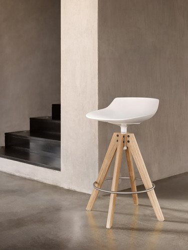 Flow Stool est une collection de grand impact et de confort, disponible avec piètement luge, piètement à 4 pieds en bois et piètement à 4 pieds en bois VN en finition naturelle, marron, blanchie ou la nouvelle finition chromatique noyer canaletto. PAD rembourré en option.