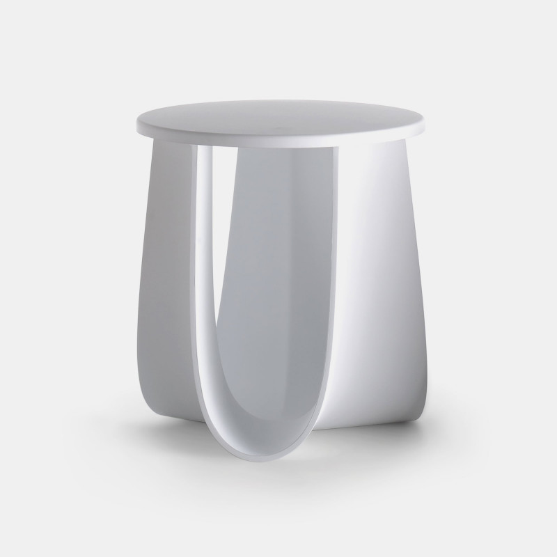 Les pieds des tabourets sont généralement conçus avec des éléments en forme de « colonne ». Au contraire, Sag a été conçu comme une pièce entière pliée sur elle-même, comme un tissu suspendu dans l'air et fondu dans trois directions en une seule forme. Sa structure en arc concave, ainsi générée, confère à Sag son image spéciale, douce et élastique, mais aussi une incroyable robustesse, capable de répartir les forces et d'absorber les charges.