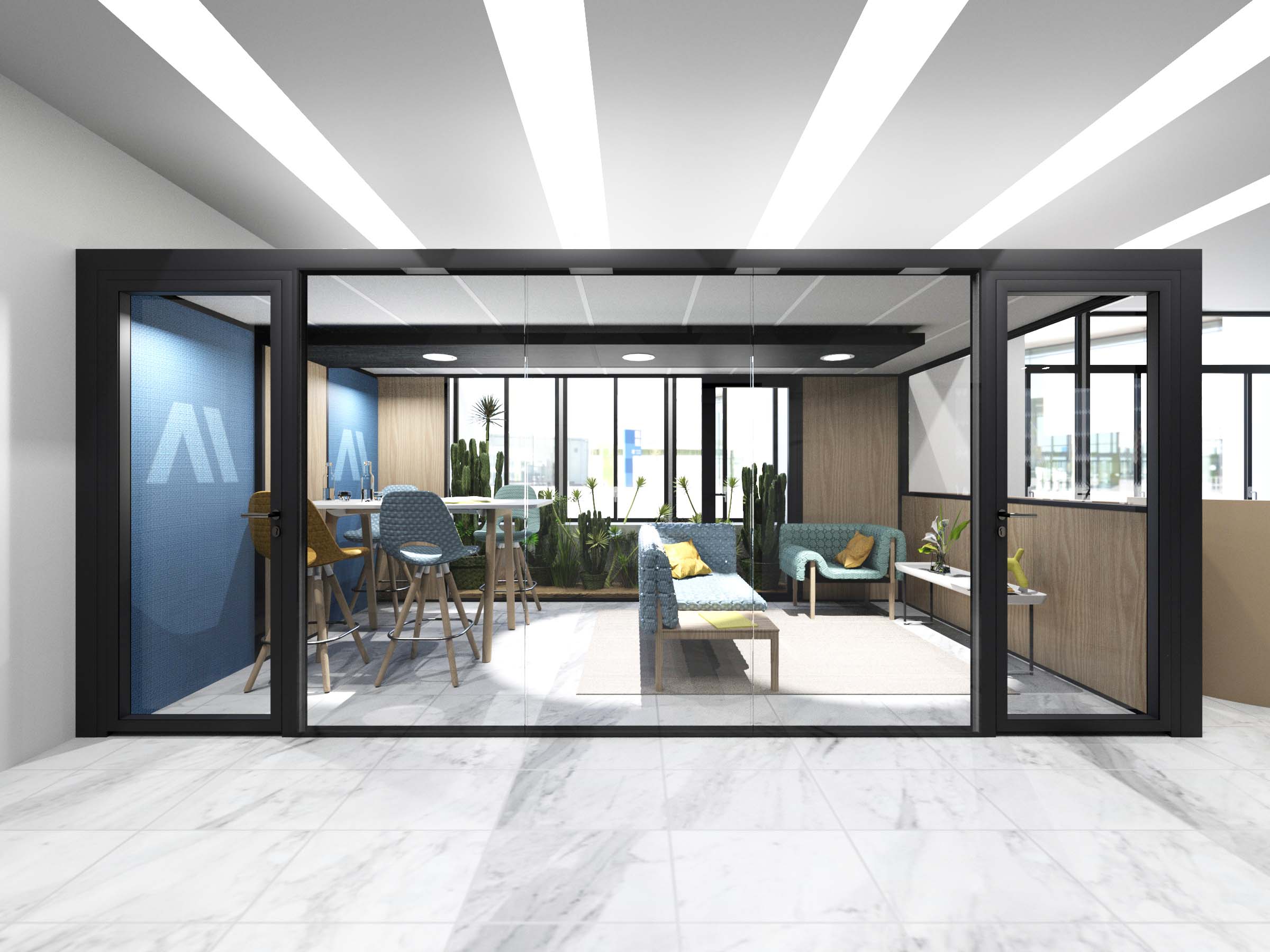 Le produit GRANDE BOX 3200x6225 du fabricant MECANALU classé dans la catégorie Equipements tertiaires et professionnels > Bureaux > Séparations de bureau est référencé dans la Matériauthèque digitale Materiaux.archi.