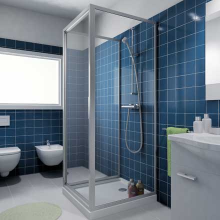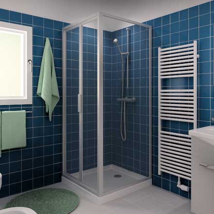 La deuxième salle de bain, plutôt que le petit hôtel ou la maison de plage, est son royaume. Solutions battantes et coulissantes, en verre et acrylique, profilés brillant blanc ou argent.