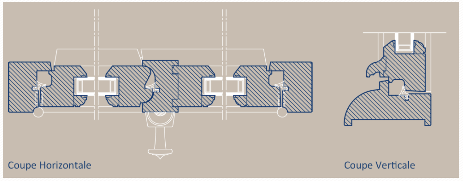 Dormant : profil à pente 10° d’épaisseur de 68 à 76 mm