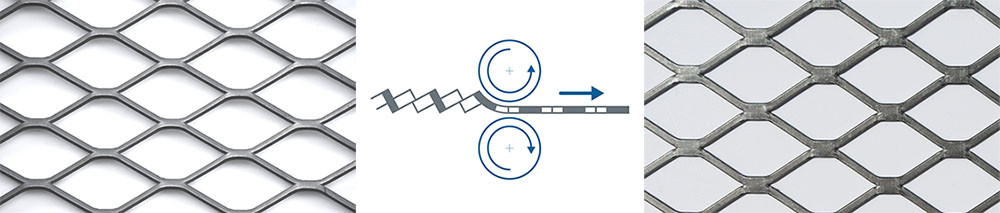 Le métal déployé aplati est obtenu par aplatissage d'un métal déployé classique.